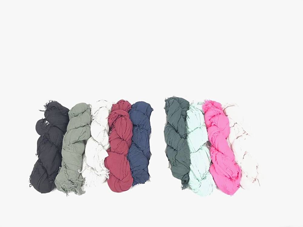 Conjunto de 12 pañuelos de tela suave y ligera, perfectos para complementar cualquier outfit. Cada pañuelo cuenta con un diseño único que combina colores lisos y un tricotado cruzado, lo que le da un toque original y elegante. Ideal para usar en cualquier ocasión, ya sea para protegerte del frío o simplemente para darle un toque de estilo a tu look. ¡No te quedes sin el tuyo y añade estos hermosos fulares a tu colección!