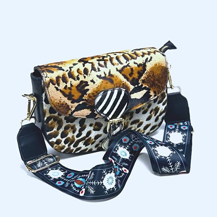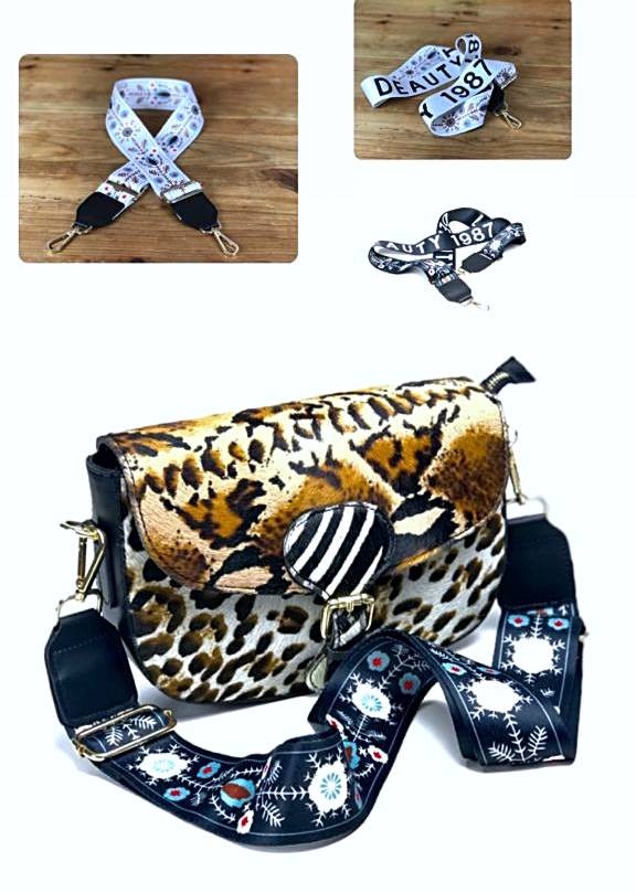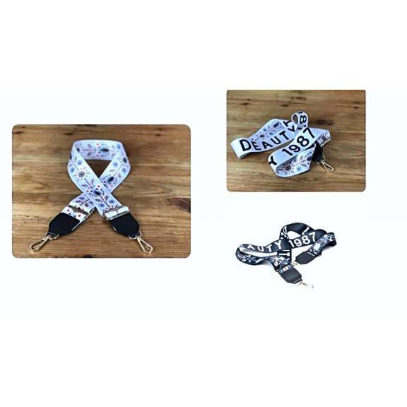 Estas asas están fabricadas en nailon de alta calidad y cuentan con un estampado de diseño multicolor que las hace realmente llamativas. Además, cada una de ellas viene equipada con un mosquetón en ambos extremos para que puedas fijarlas fácilmente a tu bolso (bolso no incluido).