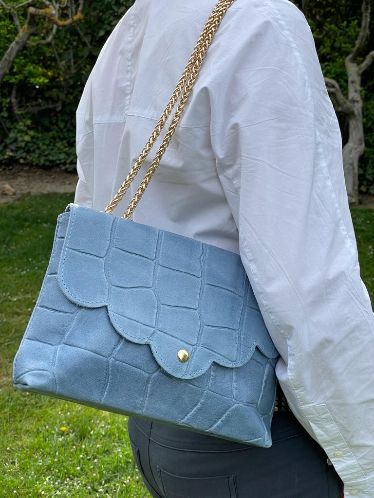Además, cuenta con una asa larga de cadena que se puede usar como bandolera o de hombro.
