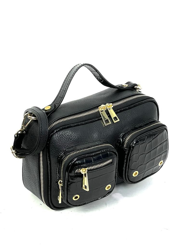 Bolso Sintético con Diseño Cuadrado y Bolsillo Trasero