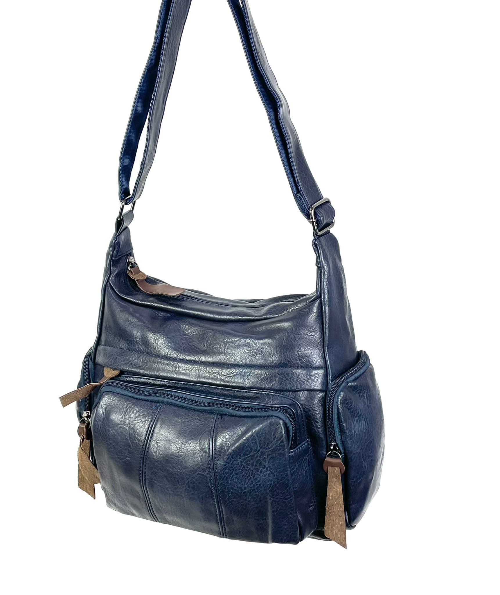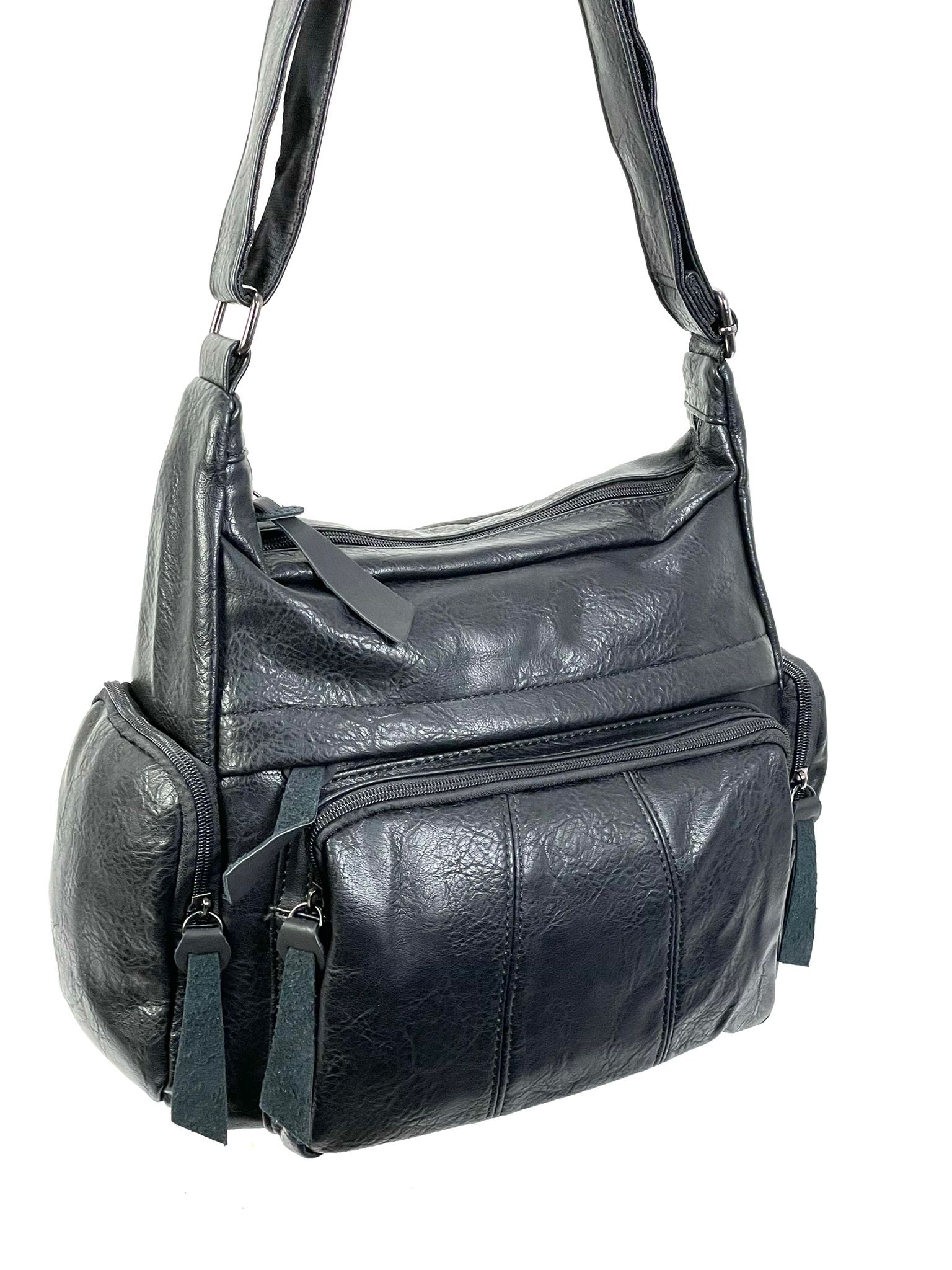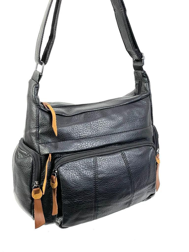 Bandolera de polipiel con una gran cantidad de bolsillos exteriores para mantener todo organizado y a mano. El material utilizado es piel sintética de alta calidad y durabilidad. El cierre principal es mediante cremallera para mayor seguridad.
