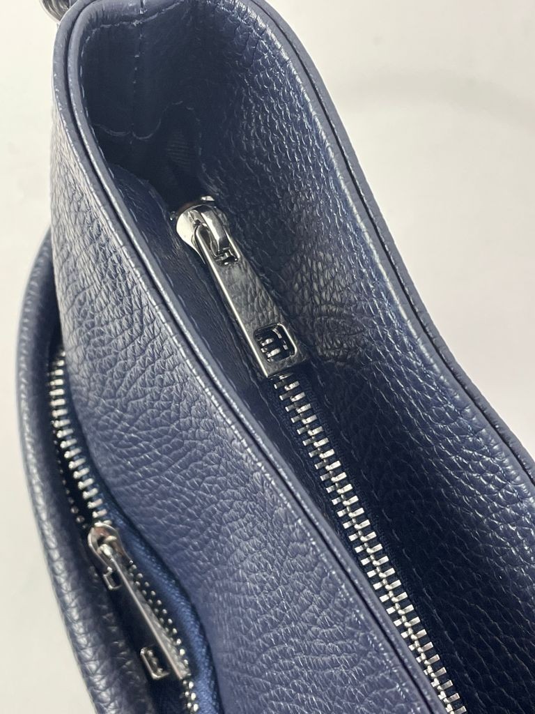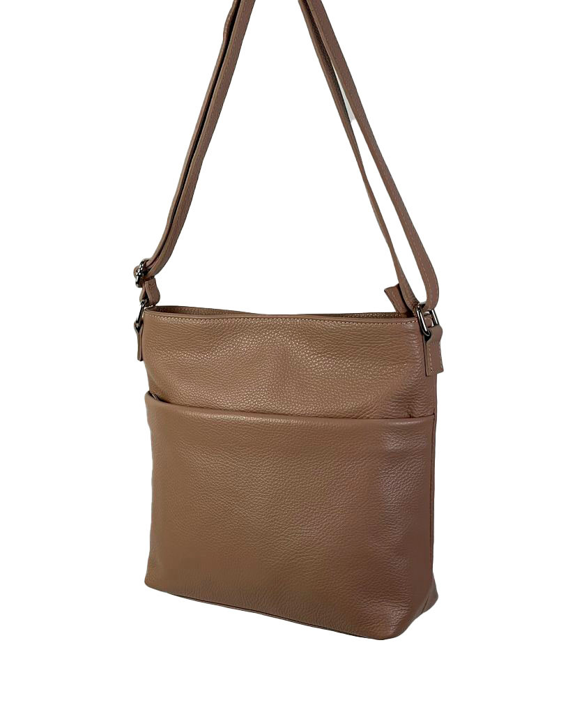 Además, incluye una asa larga de piel para llevar al hombro, un compartimento frontal con cierre de cremallera y un bolsillo trasero con cierre de cremallera. Todo ello fabricado en Italia, garantizando la calidad y el estilo que buscas en un bolso de piel.