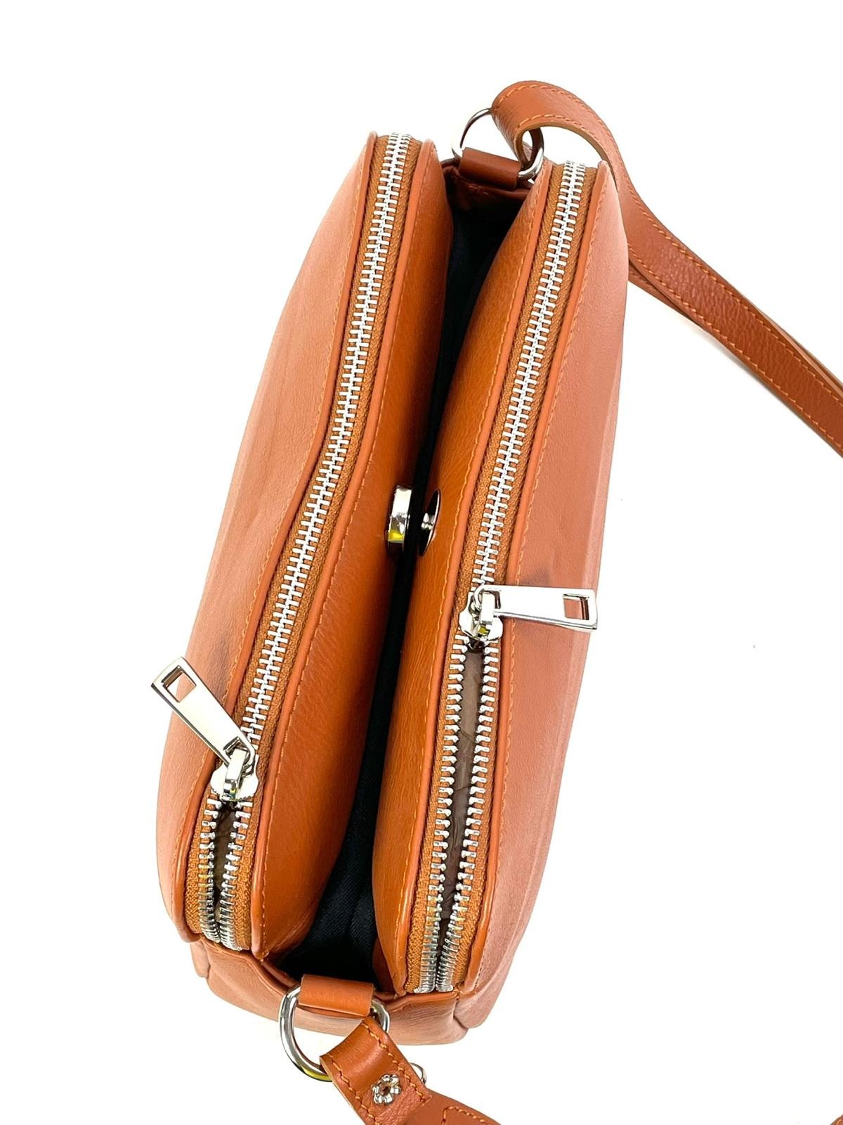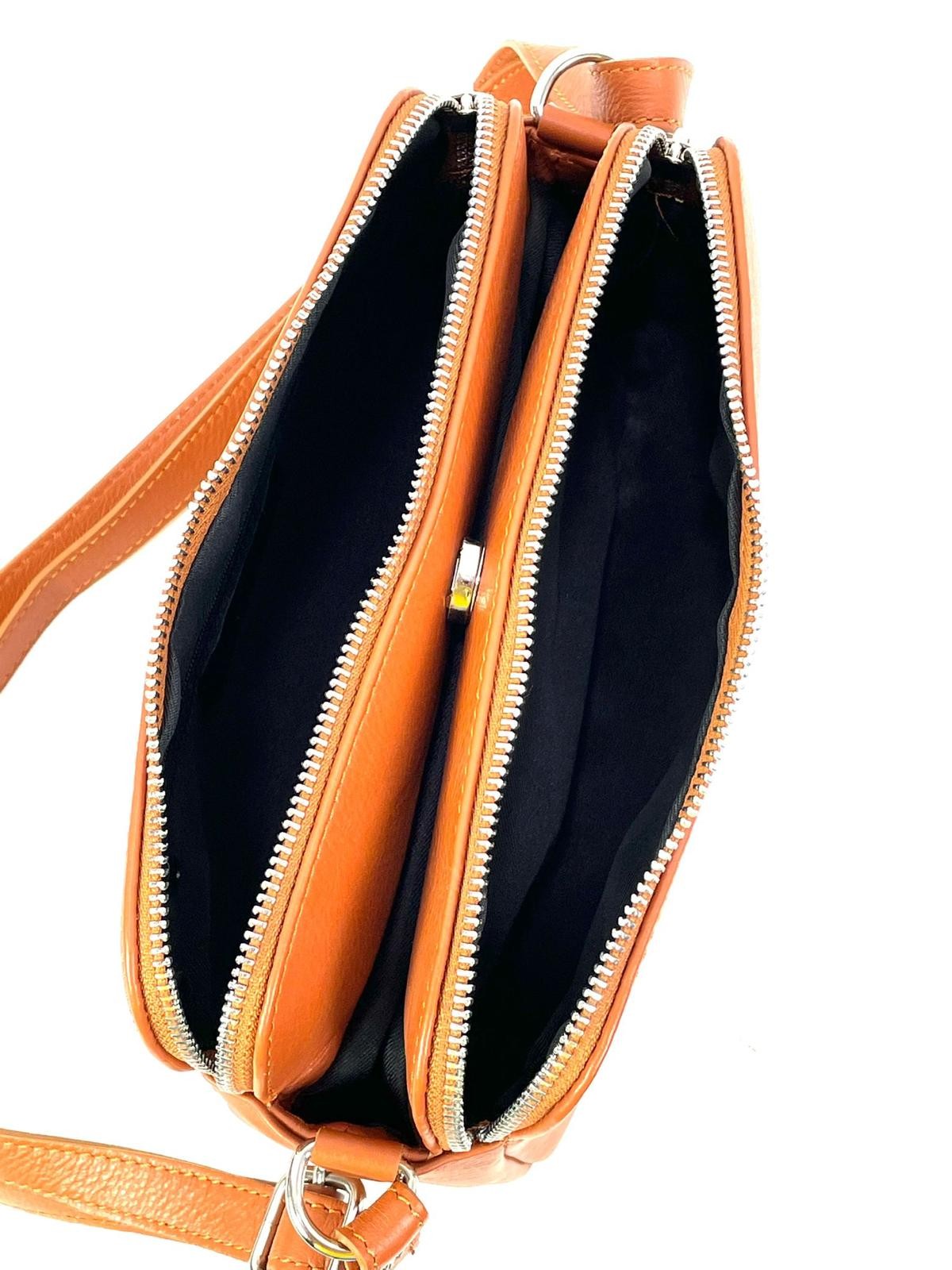 Bandolera de piel de alta calidad con tres compartimentos para organizar tus pertenencias de forma cómoda y segura.
