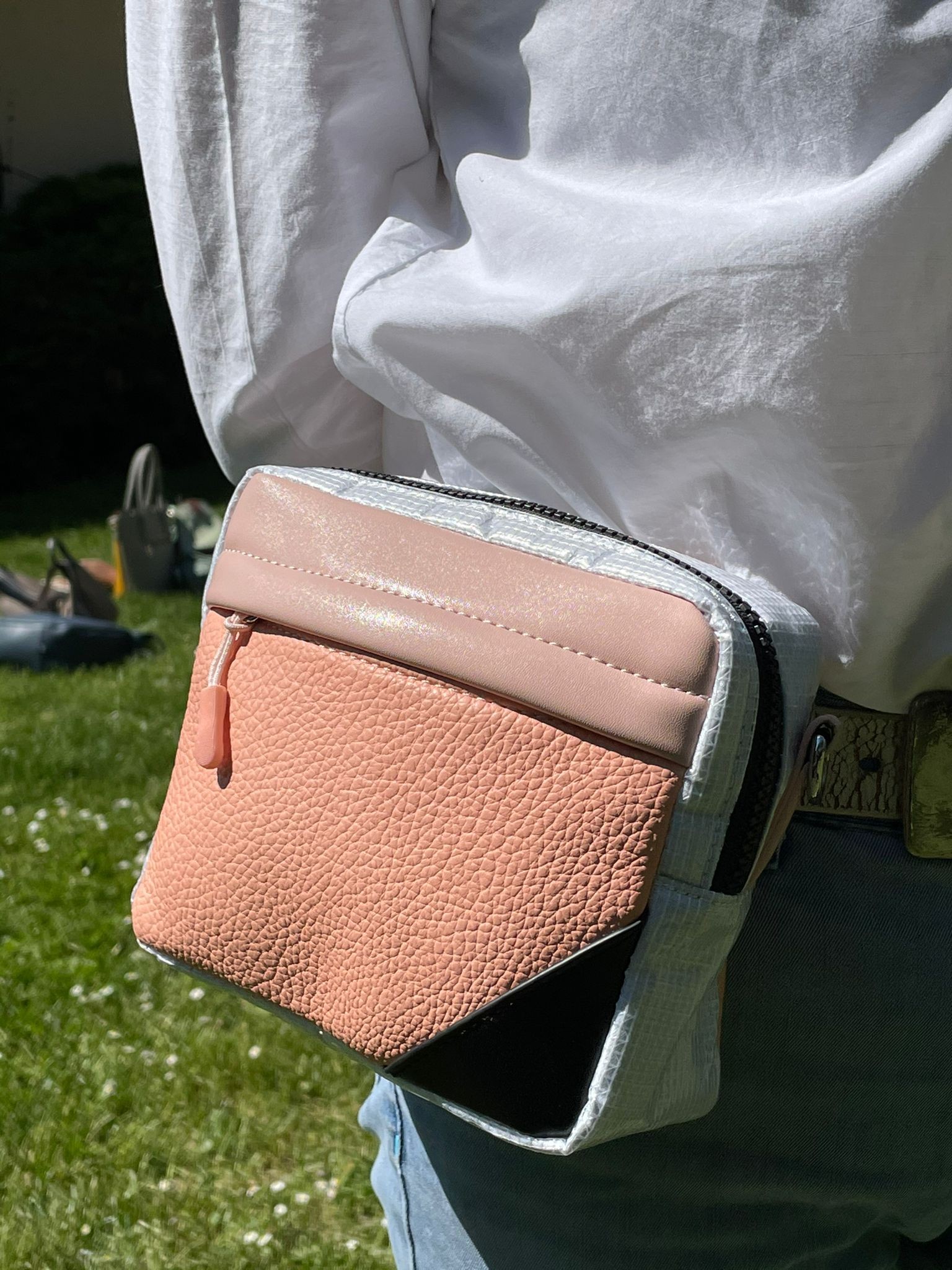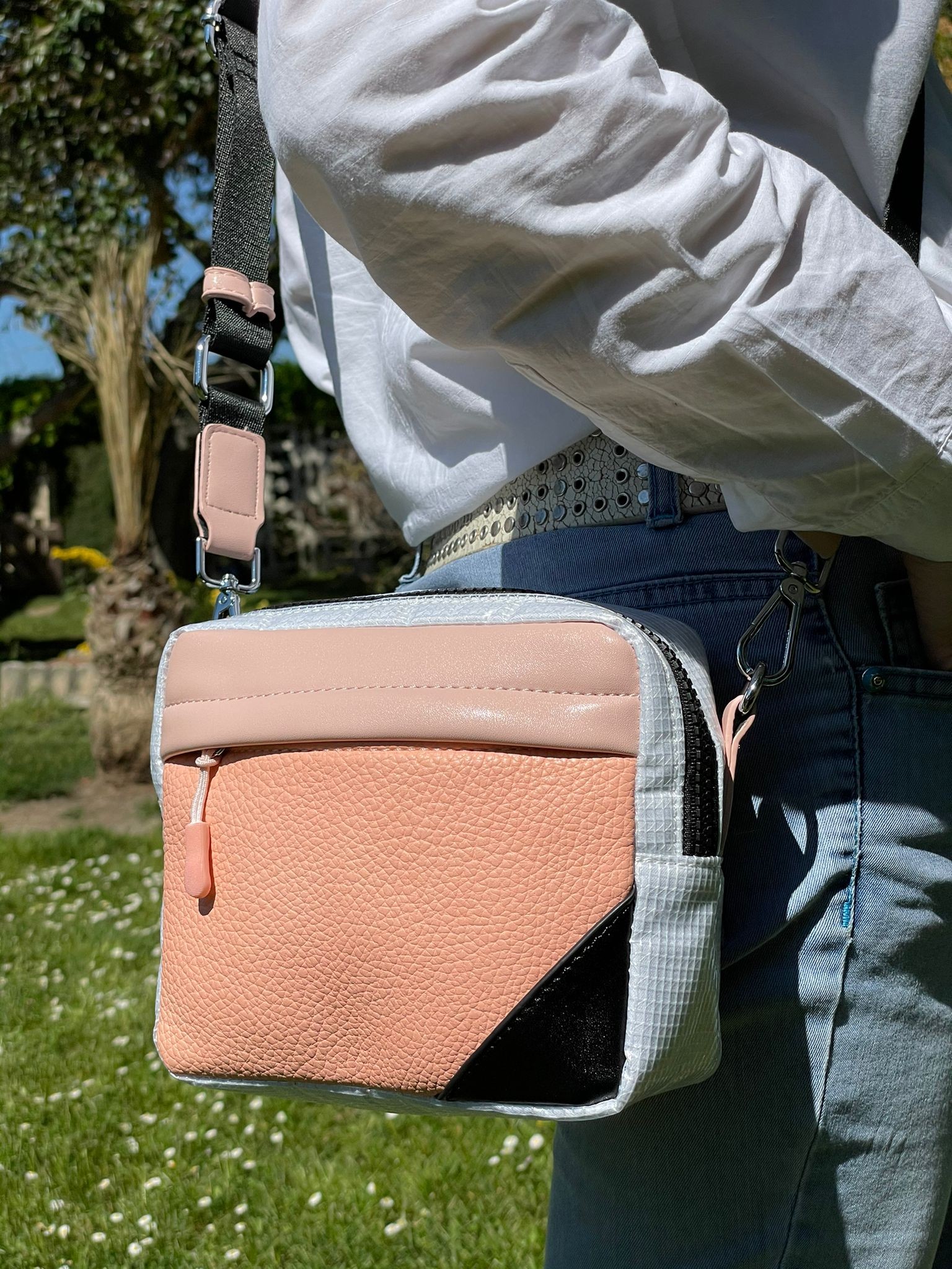 Más Sorpresas: Asa larga removible y ajustable, parte trasera que se puede meter en el cinturón