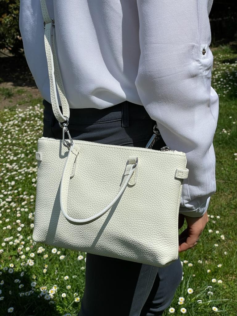 Más sorpresas: Asa larga de piel para llevar al hombro.