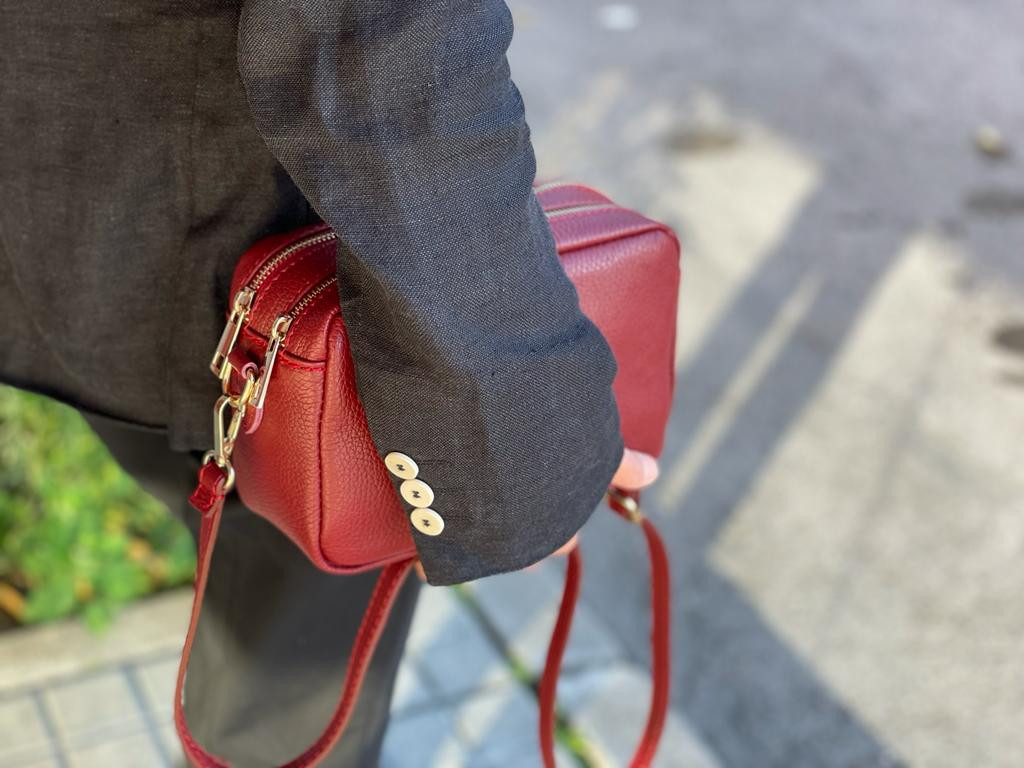 Bolso Compacto de Piel Italiana con Botón y Bolsillo Trasero