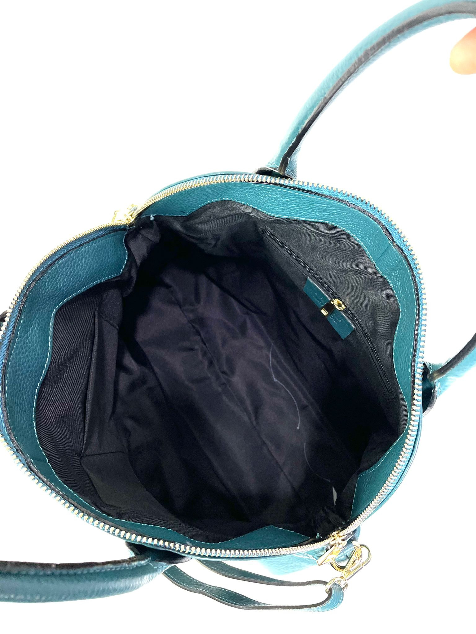 Más sorpresas: Apertura grande, asa larga de piel