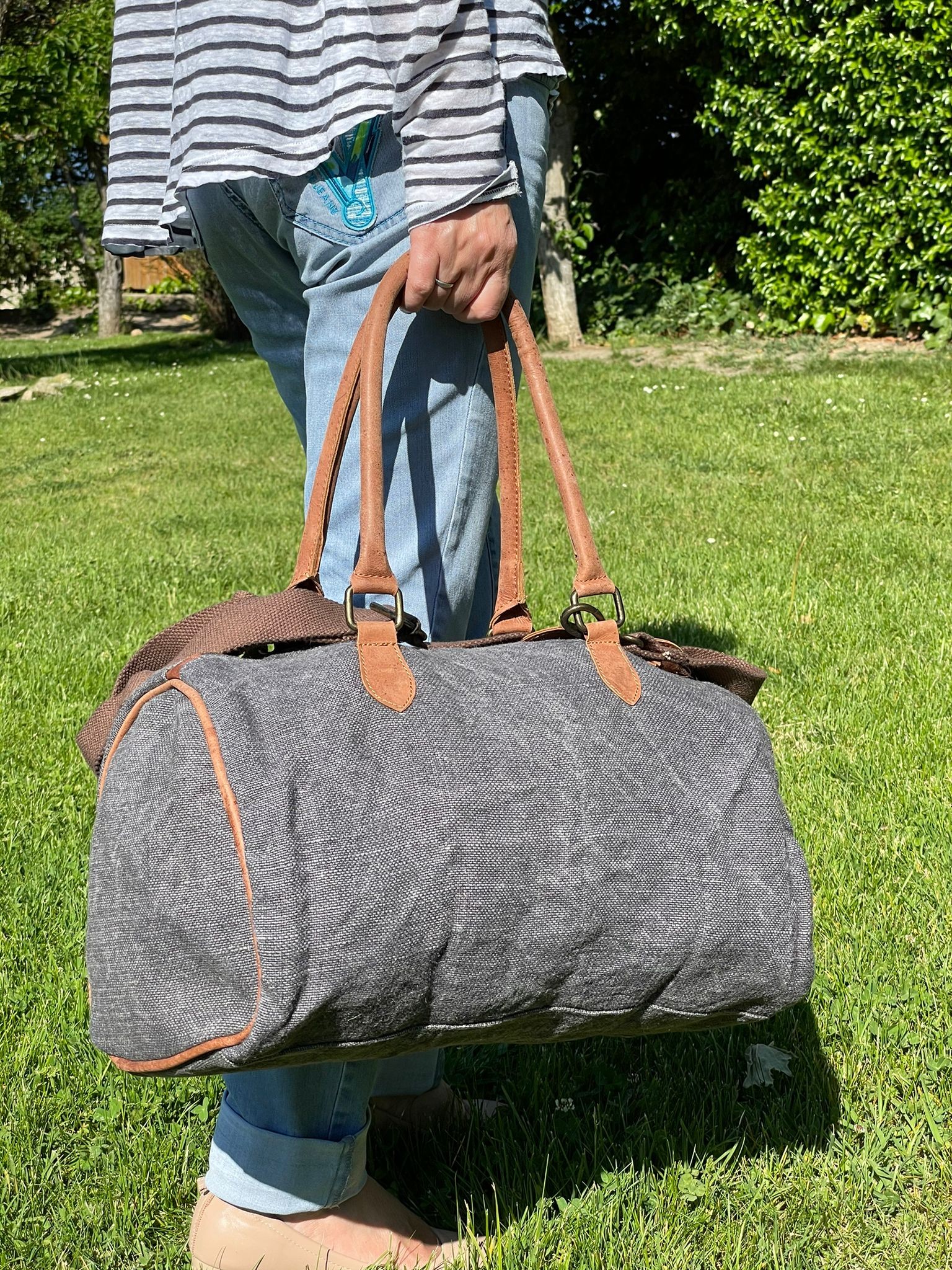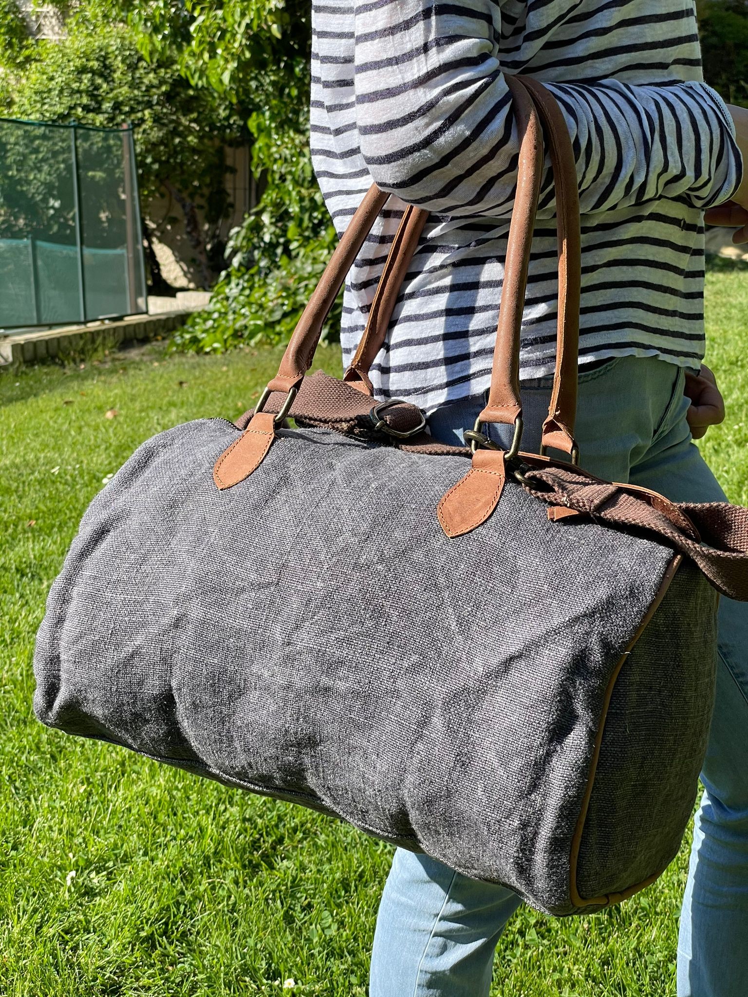 Bolso de viaje o deporte de lino y piel