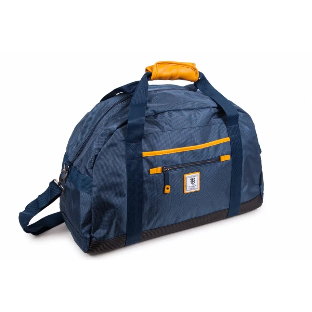 El bolso de viaje o deporte está fabricado en resistente nailon, con un cierre principal de cremallera para garantizar la seguridad de tus pertenencias. En su interior, cuenta con un forro de poliéster, un amplio compartimento principal, un compartimento frontal con cierre de velcro y un práctico bolsillo frontal con cremallera para acceder fácilmente a tus objetos más pequeños.