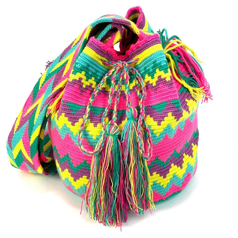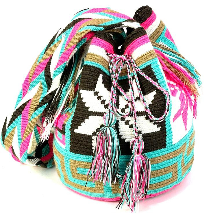 Bolso étnico GRANDE con pompones. Estilo wayuu.
