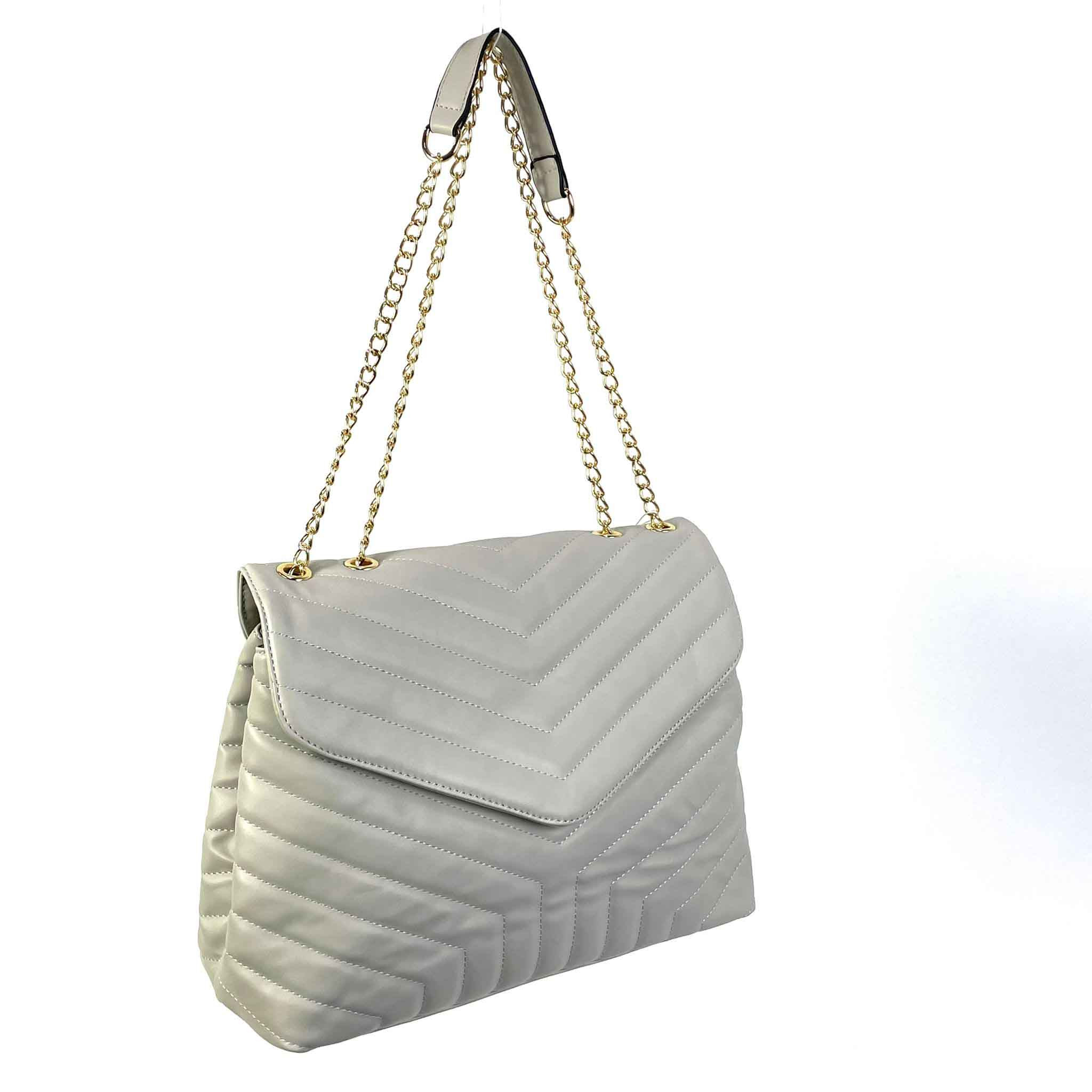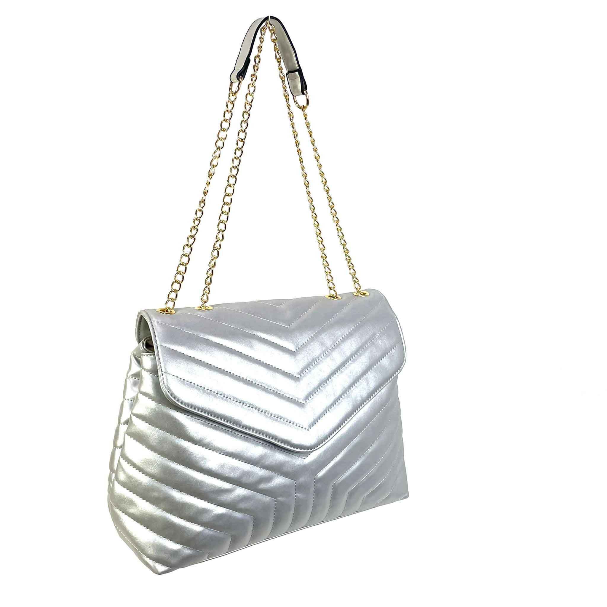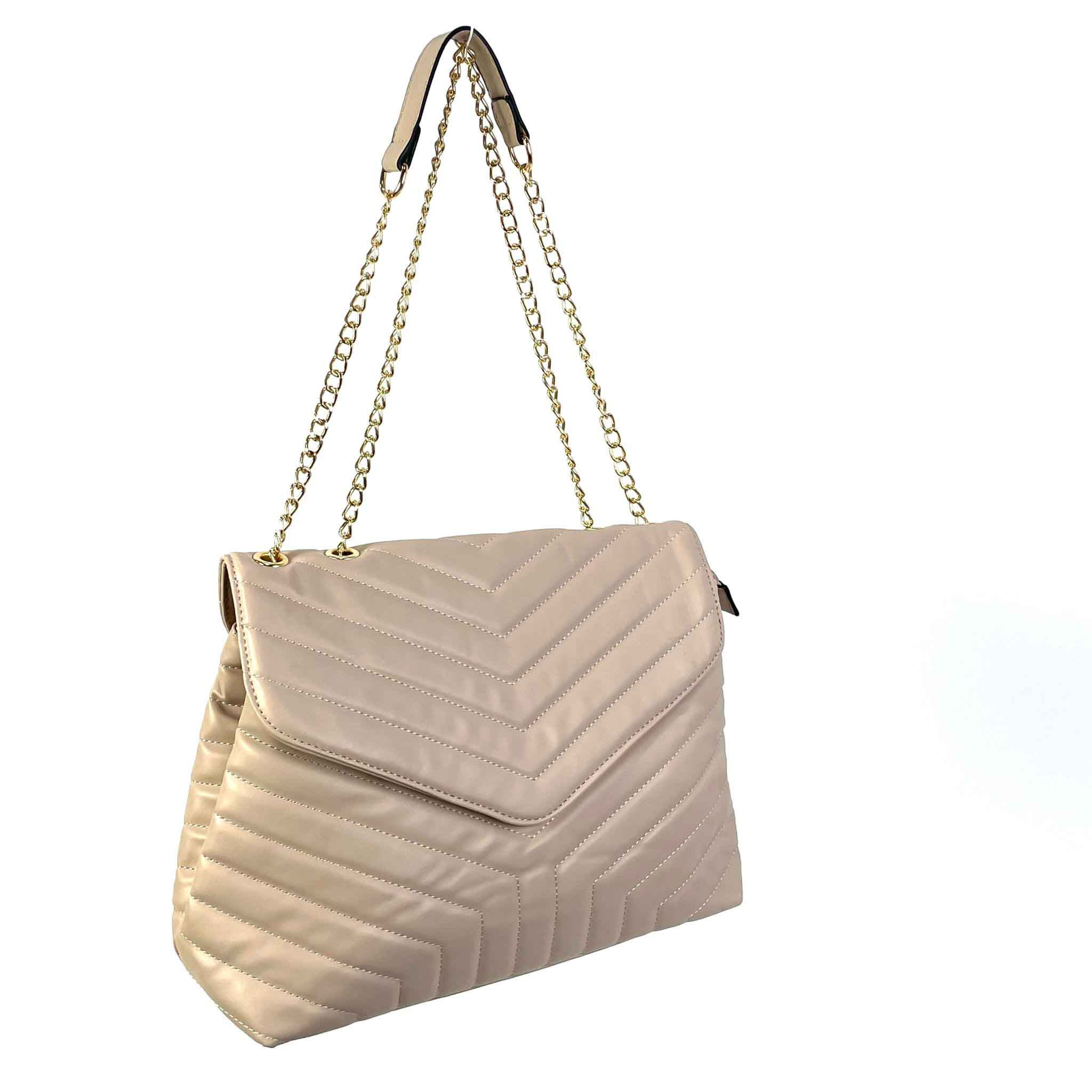 Este bolso cuenta con dos asas tipo cadena para un estilo elegante y moderno.