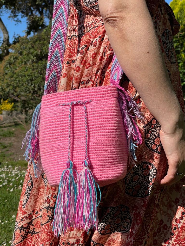 Bolso hecho a mano con tela de algodón, con un diseño étnico y colores vibrantes que evocan la frescura del verano. Este bolso es perfecto para darle un toque único y original a tu outfit, ya sea para ir a la playa o para una salida casual. Su diseño artesanal le da un aire bohemio y auténtico que no pasará desapercibido. Además, al ser de tela de algodón, es ligero y cómodo de llevar. ¡No te quedes sin el tuyo y añade un toque de color y estilo a tus looks de verano!