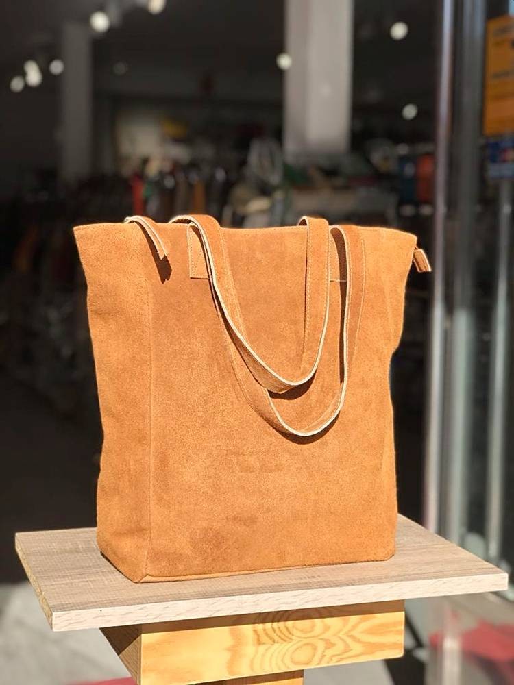 Bolso de piel estilo shopper con un elegante acabado en serraje que le da un toque único y sofisticado.