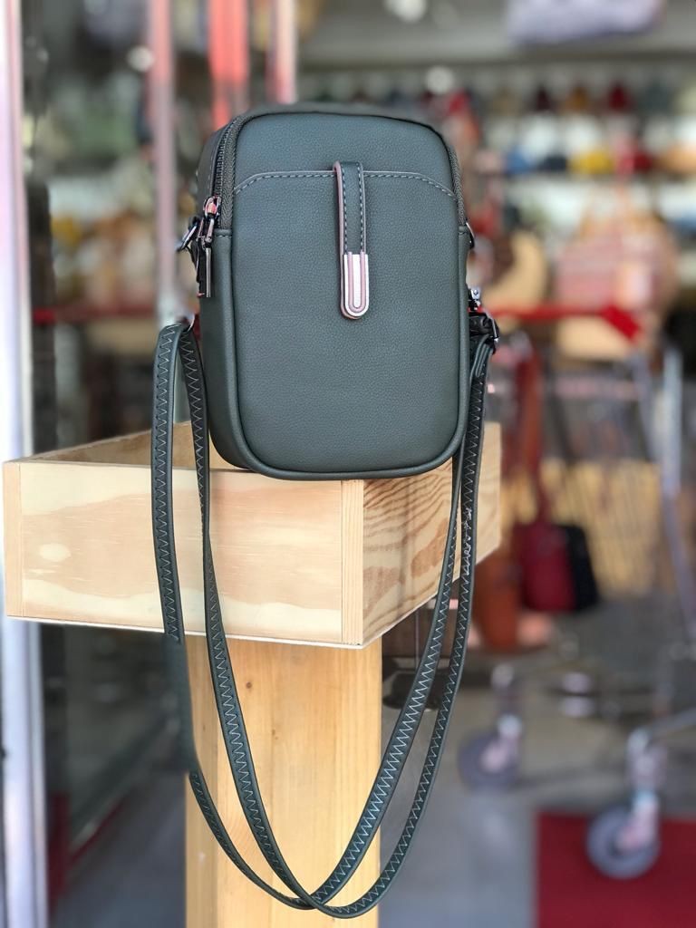 Bolso de imitación de cuero diseñado para llevar tu teléfono móvil de forma segura y organizada. Cuenta con compartimentos especiales para tus tarjetas y cartera, manteniendo todo en un solo lugar y facilitando el acceso a tus pertenencias más importantes.
