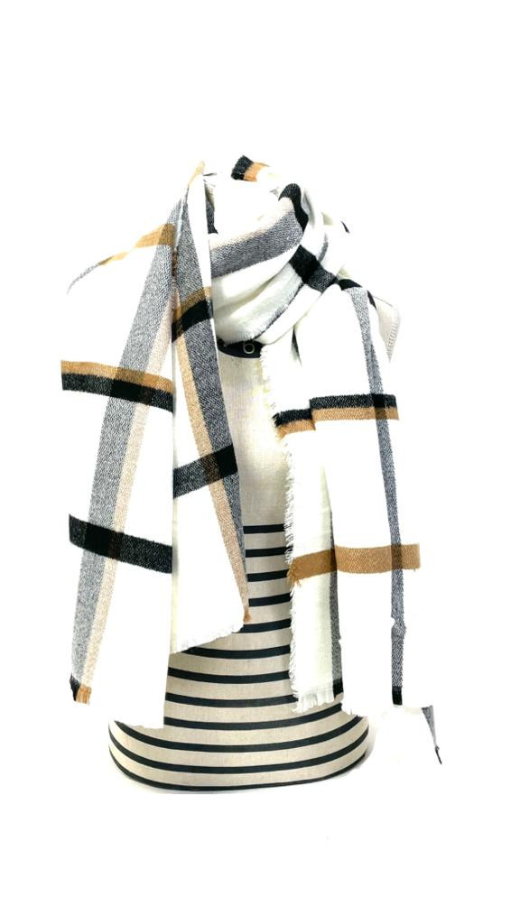 Bufanda con diseño de cuadros en tonos neutros y elegantes, perfecta para complementar cualquier outfit de invierno. Confeccionada con materiales de alta calidad que garantizan su durabilidad y suavidad al tacto. Su tamaño generoso permite abrigar el cuello con comodidad y estilo. Ideal para lucir en días fríos y darle un toque de sofisticación a tu look. Atrévete a añadir este accesorio atemporal a tu colección y estarás listo para enfrentar el frío con estilo.