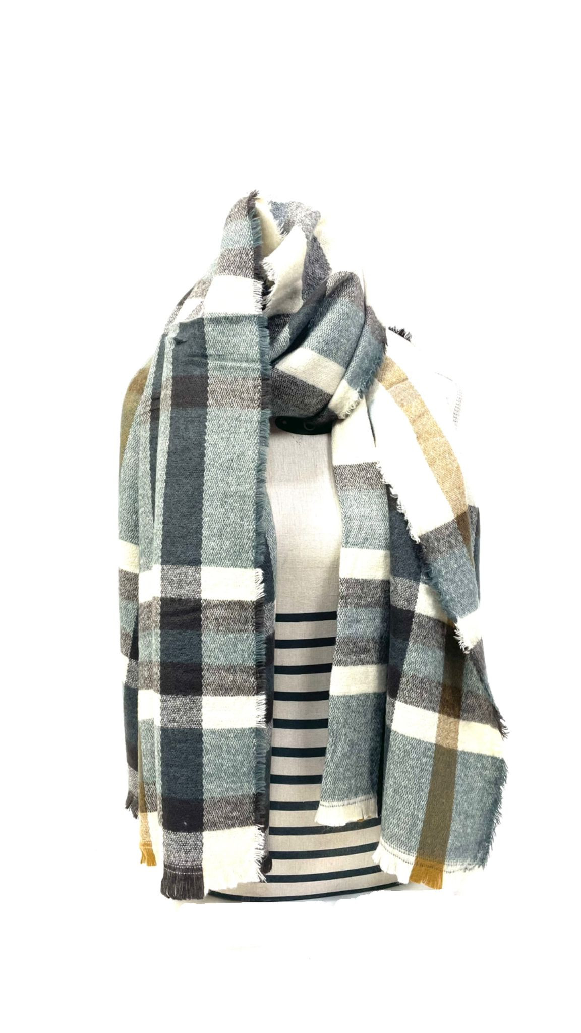 Esta bufanda con estampado de cuadros es el accesorio perfecto para complementar tu outfit en los días fríos. Confeccionada con materiales de alta calidad, te mantendrá abrigado y con estilo. Su diseño clásico y atemporal hace que sea fácil de combinar con cualquier prenda de tu armario. Ya sea para un look casual o más formal, esta bufanda será tu aliada para lucir elegante y a la moda. Atrévete a añadir un toque de sofisticación a tus outfits con esta bufanda de cuadros.