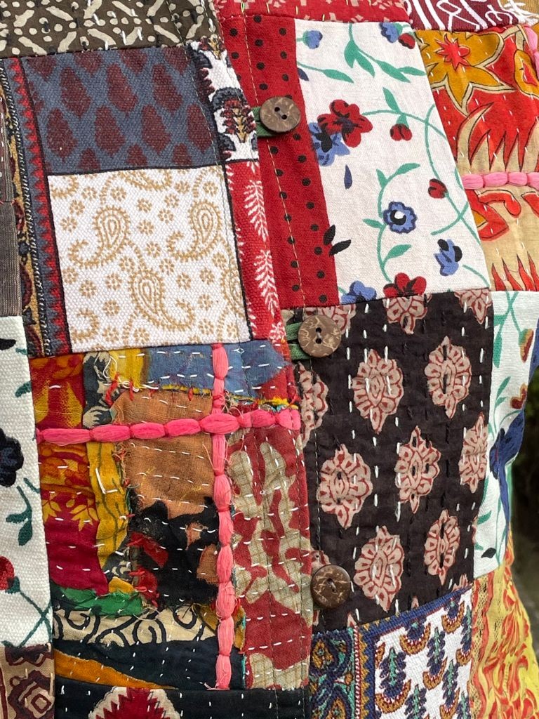 Chaleco reversible hecho a mano, cada pieza es única en su diseño.