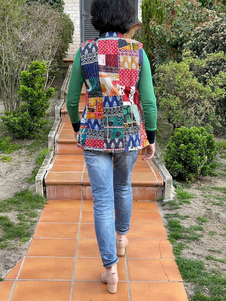 Chaleco reversible de estilo artesanal, cada pieza es única en su diseño.