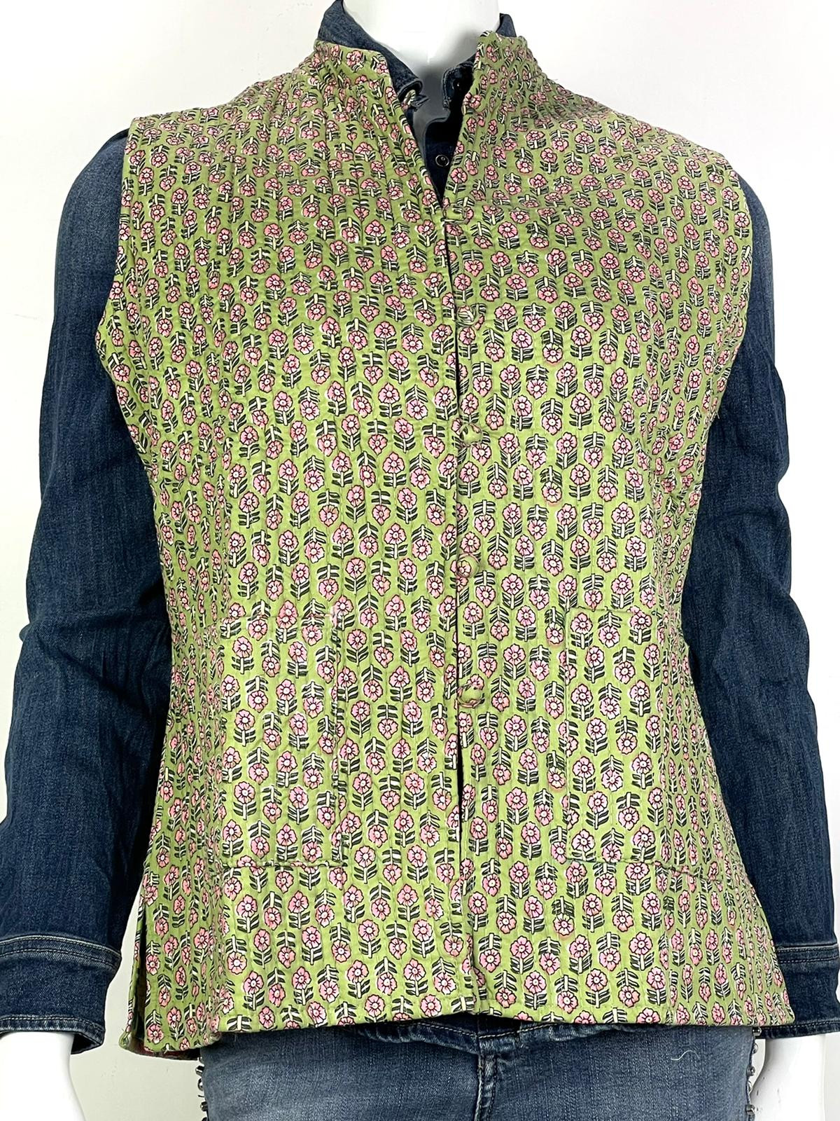 Chaleco reversible de estilo artesanal, cada pieza es única en su diseño.