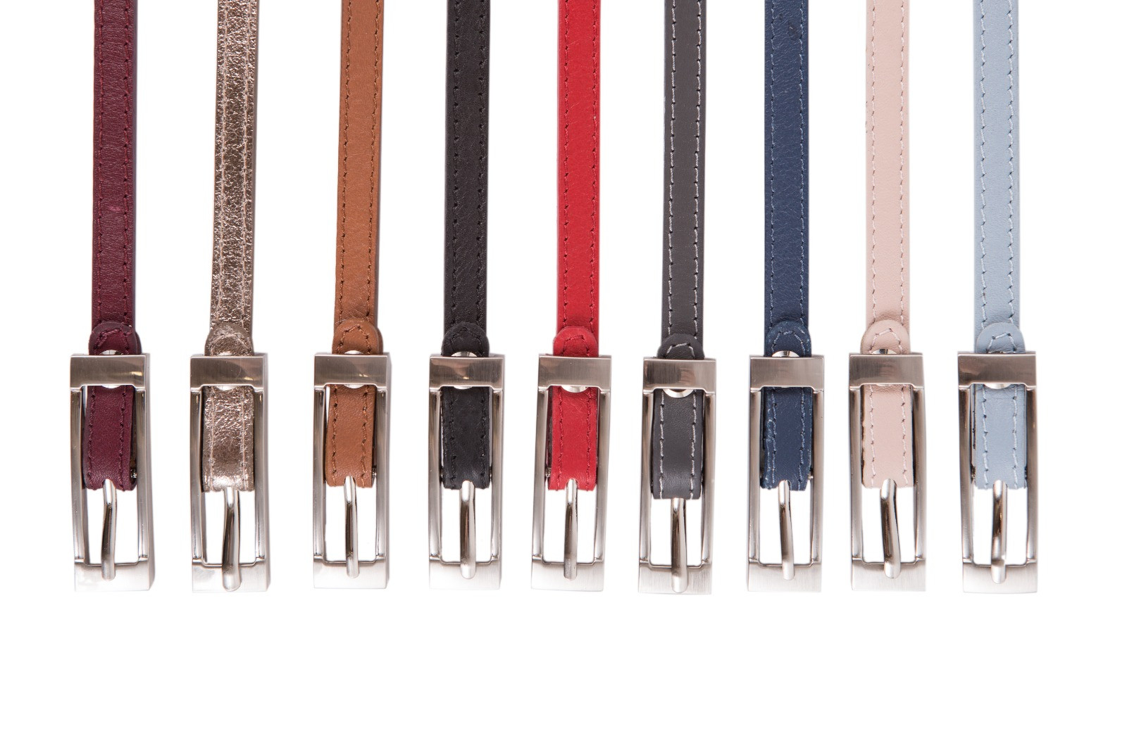 Cinturón confeccionado en piel auténtica con estampado de colores sólidos y un ancho de 1 centímetro.