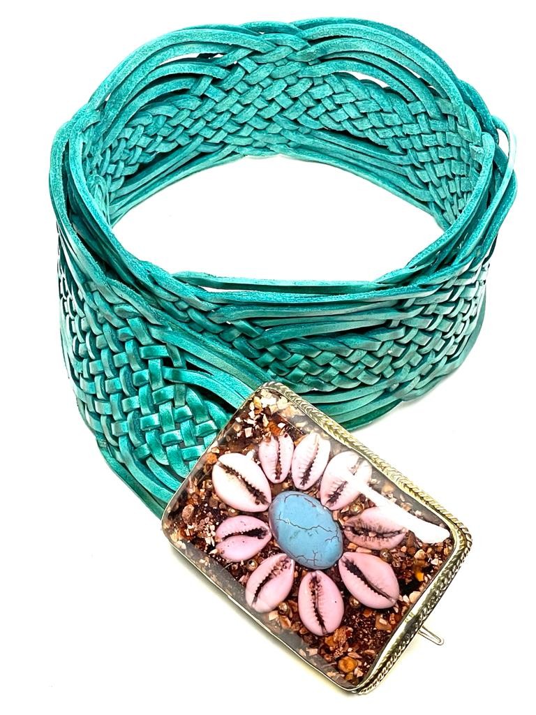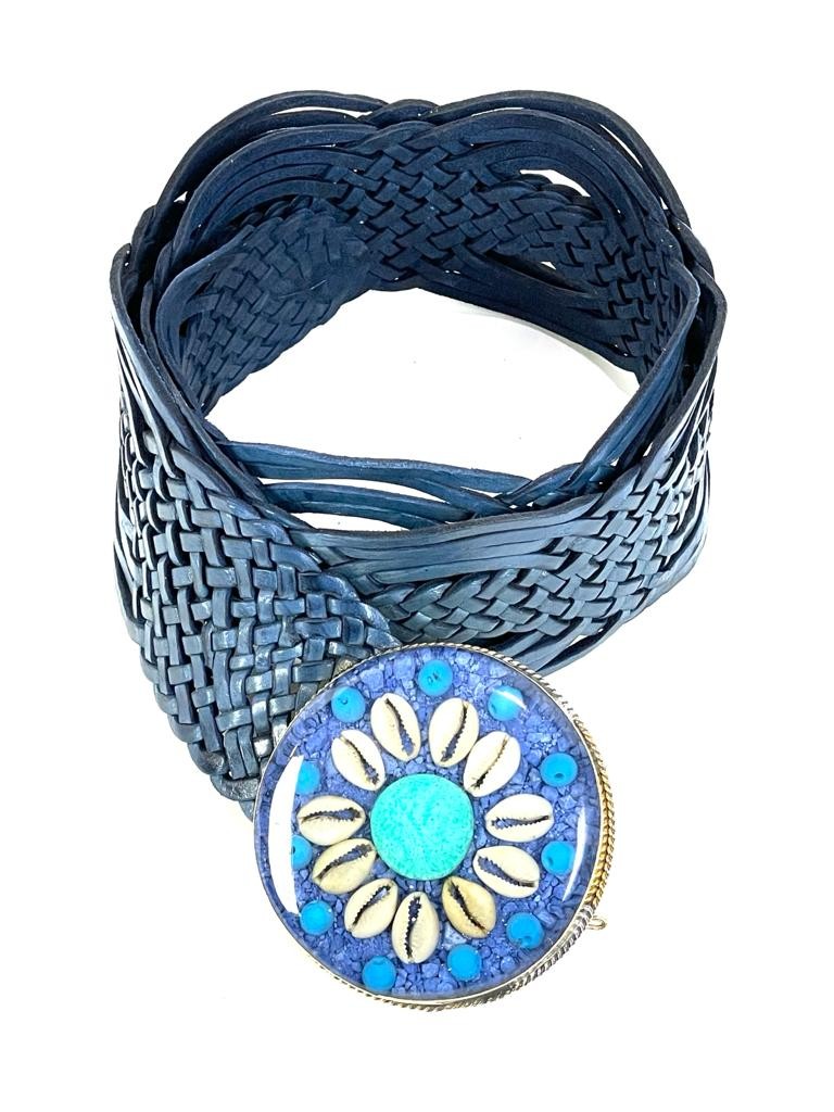 Cinturón hecho a mano con piel de Marruecos y una hebilla de gran tamaño. Cada pieza es única y puede presentar variaciones respecto a la imagen mostrada.