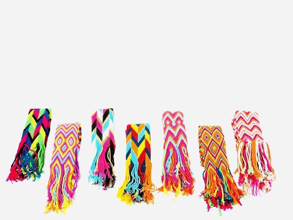 Cinturón artesanal de estilo wayuu, cada pieza es única y puede variar ligeramente de la imagen mostrada debido a su naturaleza artesanal.