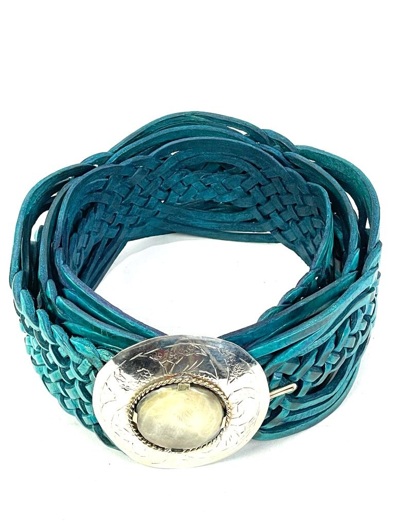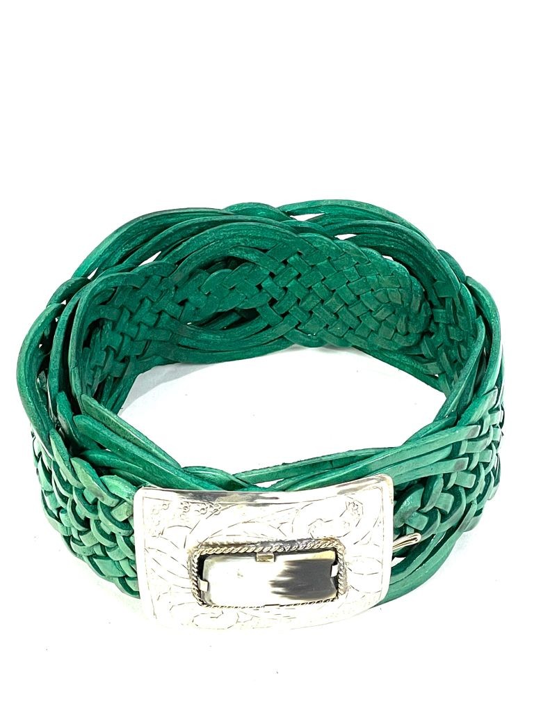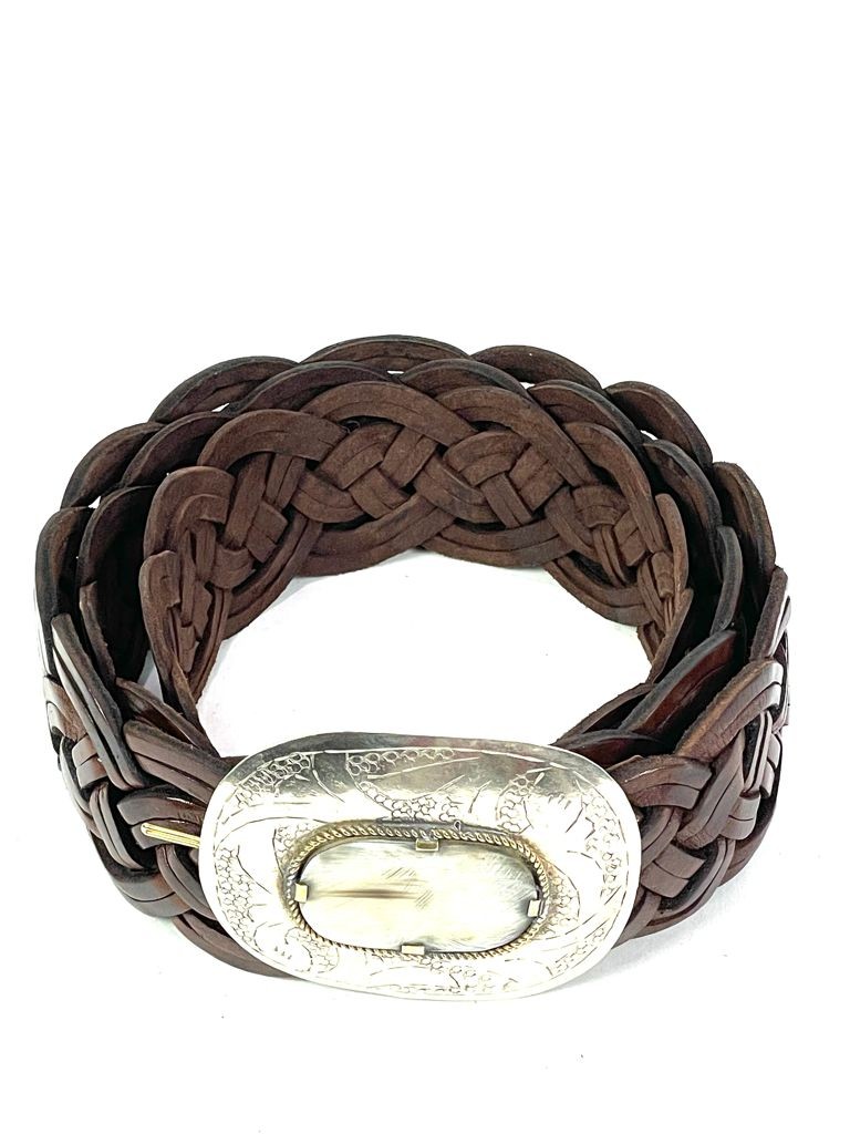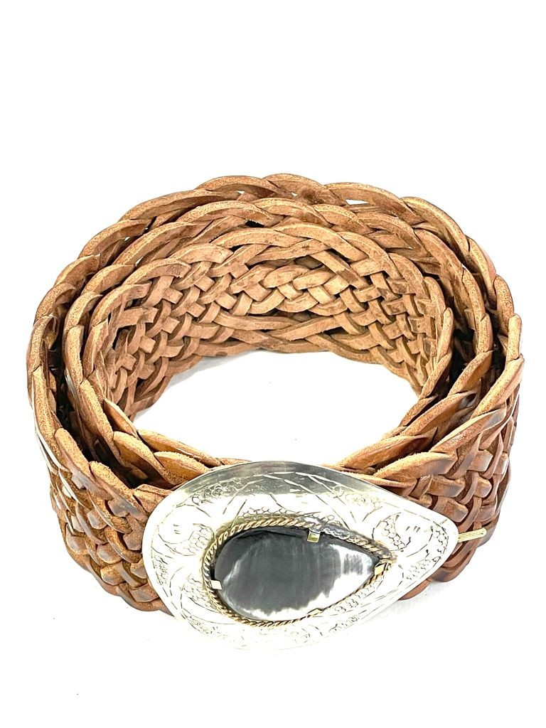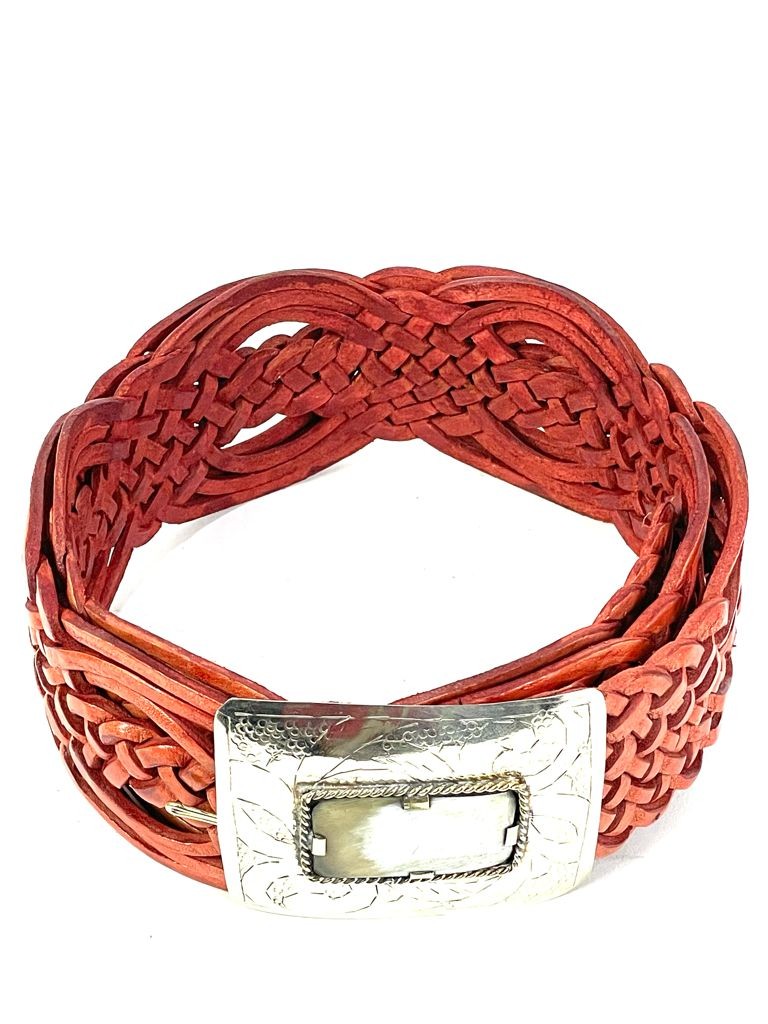 Cinturón de piel marroquí hecho a mano con una hebilla de tamaño mediano. Cada pieza es única y puede variar ligeramente de la imagen mostrada.