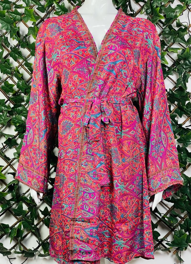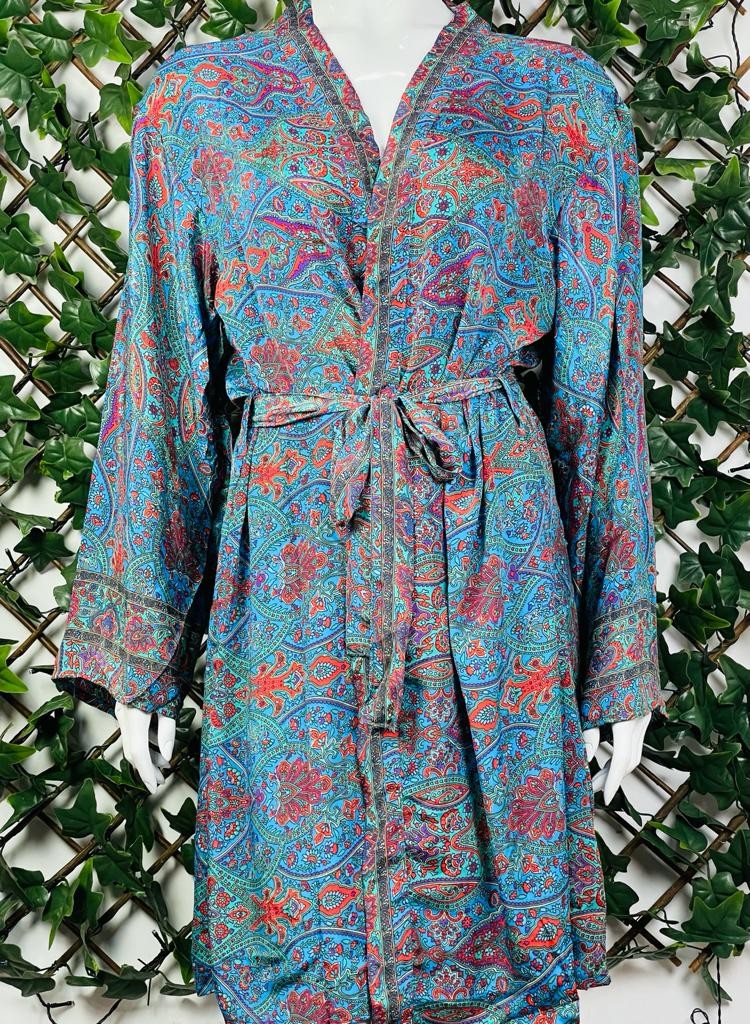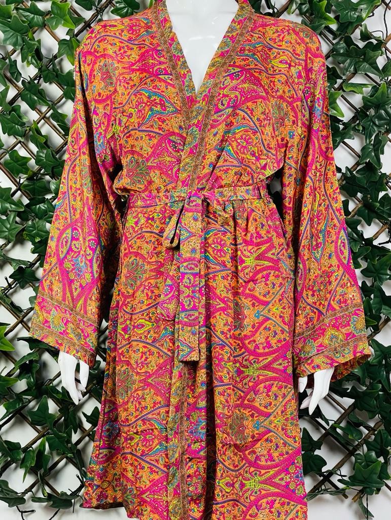 Kimono único y artesanal con estampado étnico. Cada pieza es única y no hay dos iguales, lo que lo convierte en una prenda exclusiva y especial. Hecho a mano con materiales de alta calidad, este kimono es perfecto para añadir un toque de estilo y originalidad a cualquier outfit. Ideal para quienes buscan prendas únicas y con personalidad.