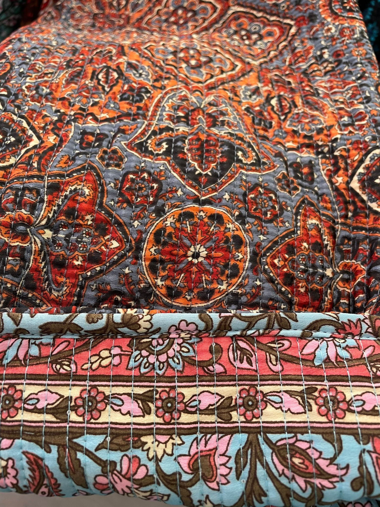 Kimono reversible y acolchado de estilo étnico, confeccionado de forma artesanal y llega hasta la rodilla. Cada pieza es única y no hay dos iguales.