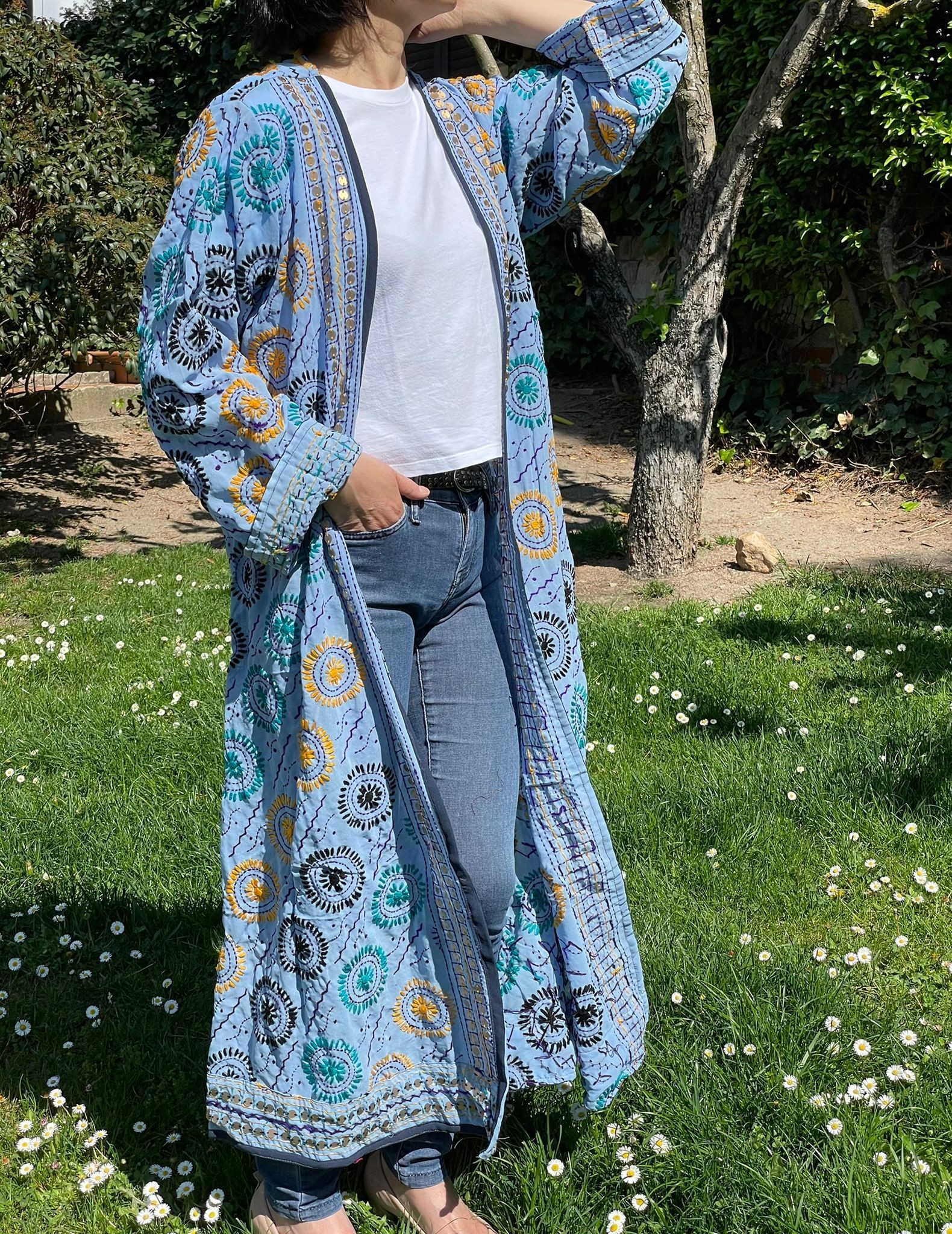 Kimono con exquisitos bordados a mano en una variedad de diseños únicos y coloridos. Cada pieza es única y especial, perfecta para agregar un toque de estilo bohemio a tu outfit.