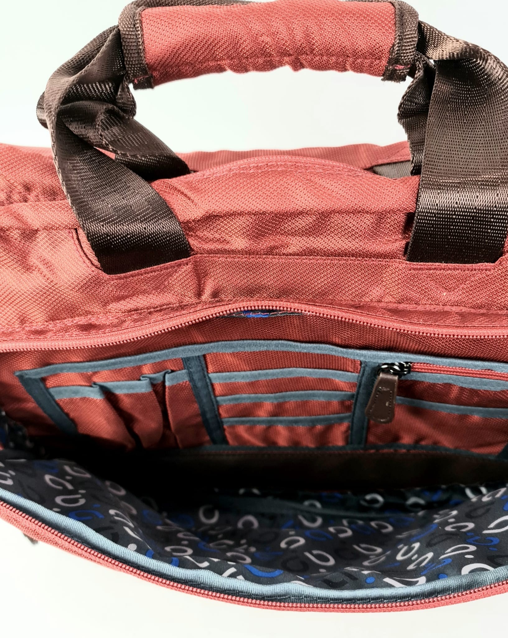 Además, dispone de un compartimento frontal con varios espacios para organizar tus objetos personales. El forro está hecho de poliéster de alta calidad. Sus dimensiones son 38x10x30cm (largo x ancho x alto) y su base es plana para mayor estabilidad.