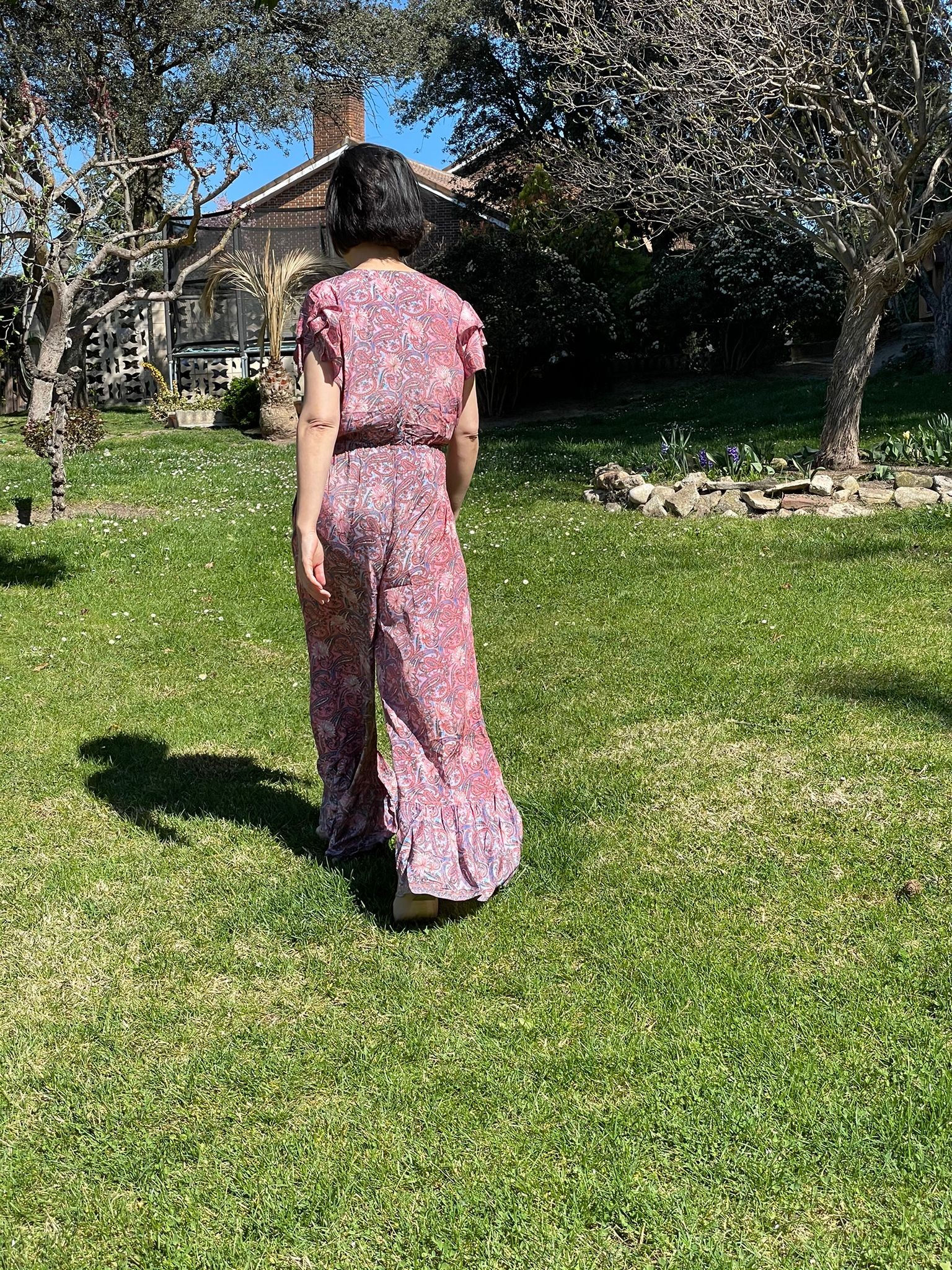 Destaca por sus volantes en las mangas y en el pie de pantalón, añadiendo un toque de sofisticación y estilo a tu look.