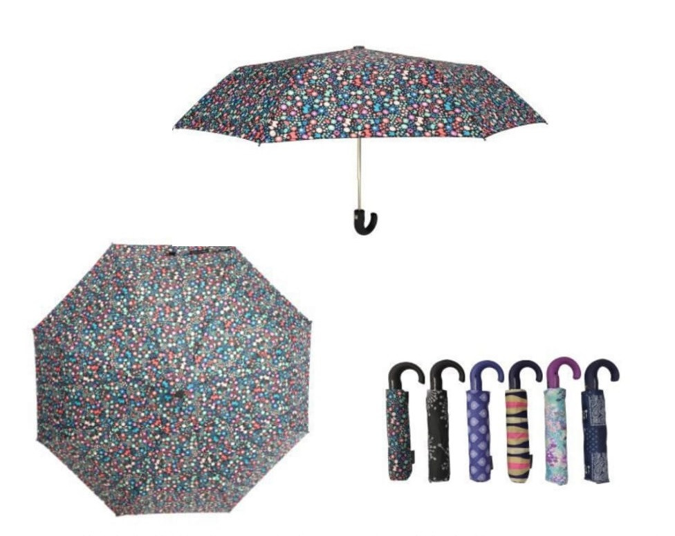 Paraguas cortos plegables y automáticos con diseño abombado y mango de plástico antideslizante. Este set incluye una variedad de diseños coloridos y alegres para que puedas elegir el que más te guste.