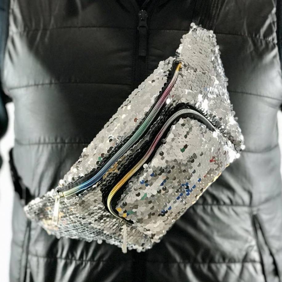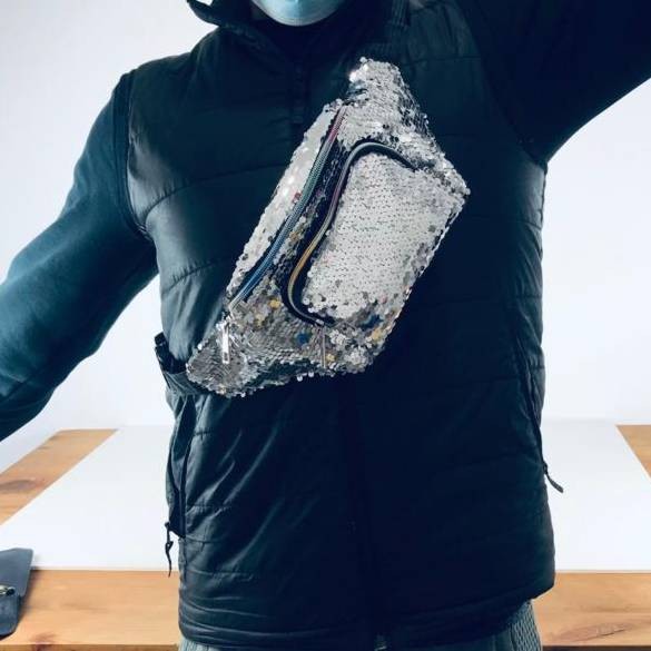 Confeccionadas en nailon, estas riñoneras son el complemento perfecto para llevar tus objetos personales de forma segura y con estilo. Cada modelo cuenta con un estampado de lentejuelas de colores únicos y un cierre de cremallera con acabado cromado. La parte trasera y la cinta de sujeción son de color negro, lo que le da un toque elegante y versátil.