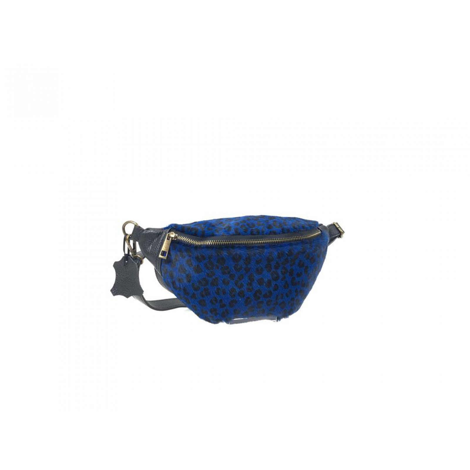Riñonera de leopardo de piel de vacuno con un diseño único y llamativo.