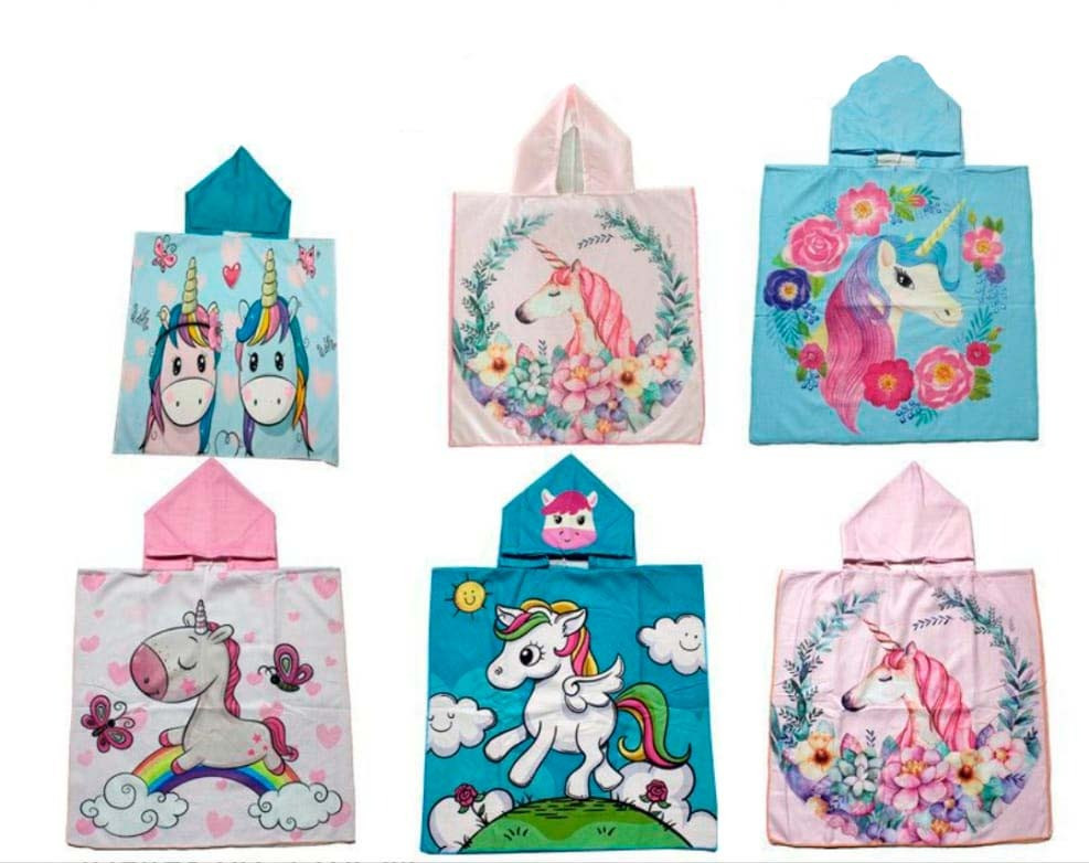 Conjunto de 12 toallas para niñas perfectas para el verano, la playa y la piscina. Con un encantador diseño de unicornios y arcoíris en colores vibrantes que harán que tu pequeña se sienta como una princesa. Cada toalla viene con una capucha incorporada para secar su cabecita después del baño, manteniéndola cómoda y abrigada. ¡Haz que la hora del baño sea aún más divertida con estas adorables toallas!