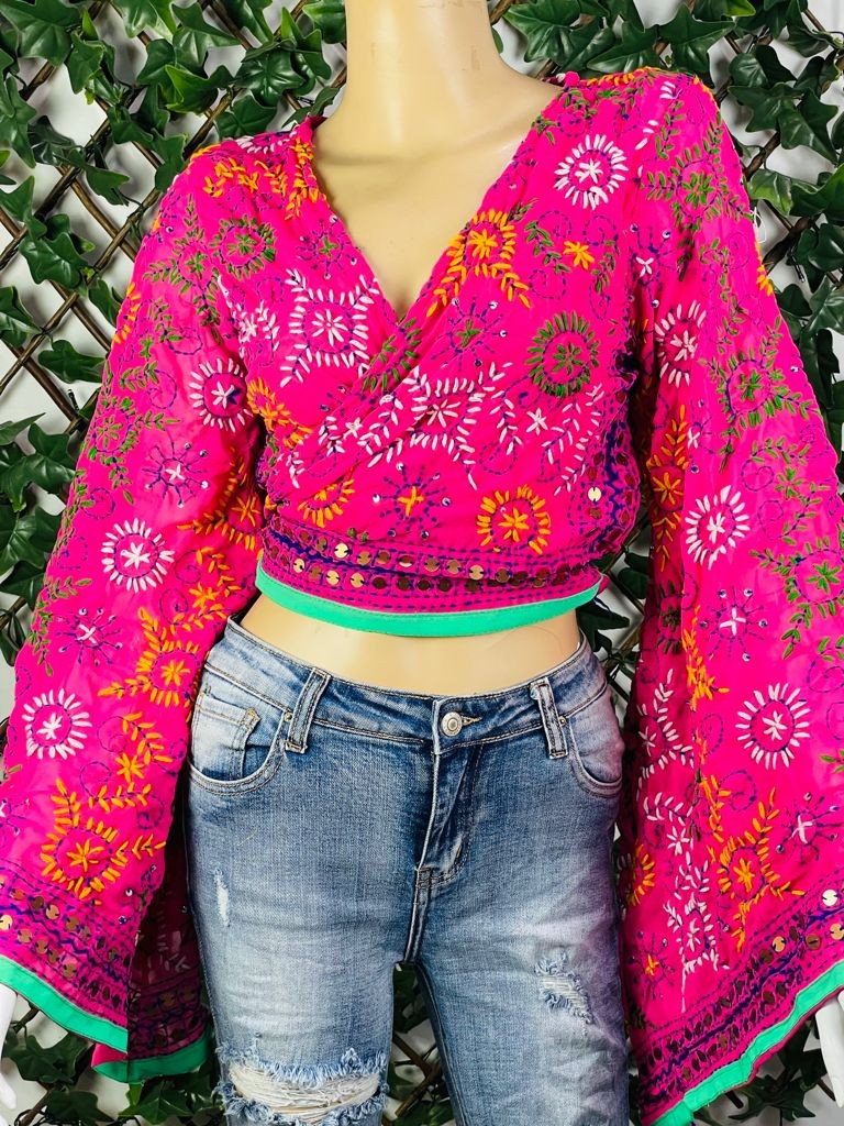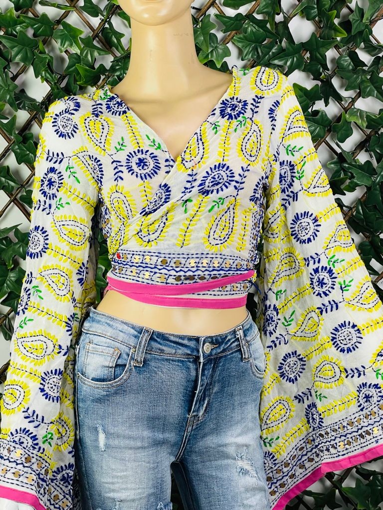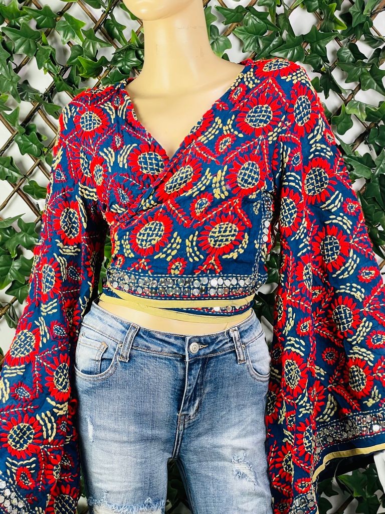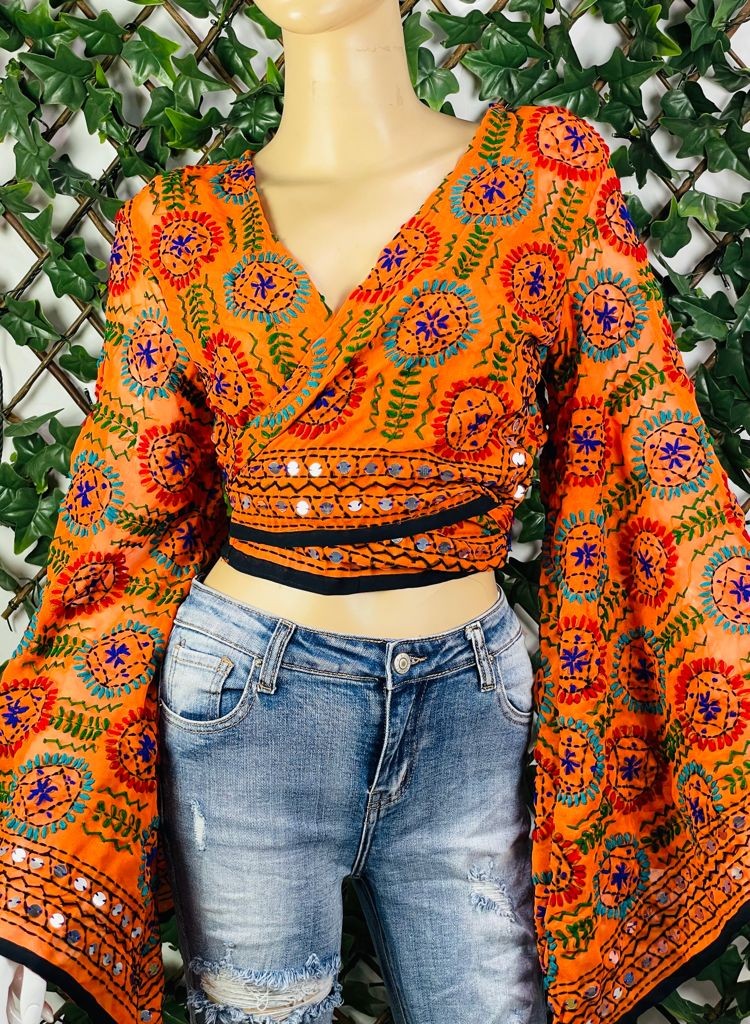 Top étnico con bordado a mano y mangas acampanadas, cada pieza es única en su diseño de bordado, por lo que no hay dos iguales.