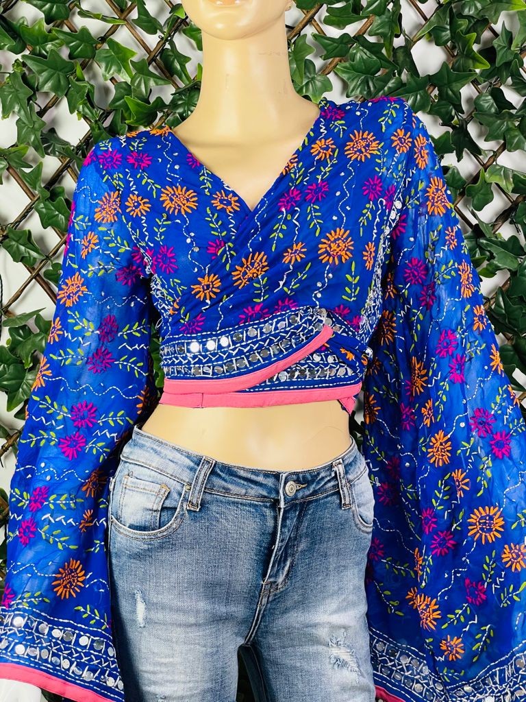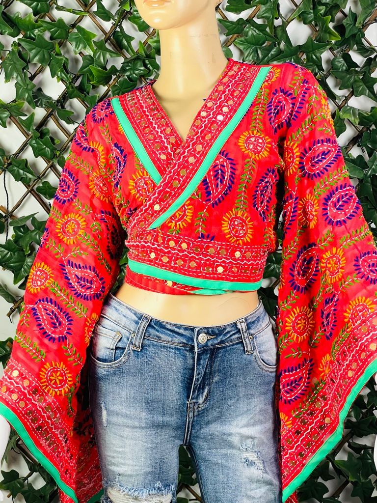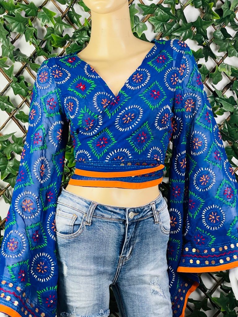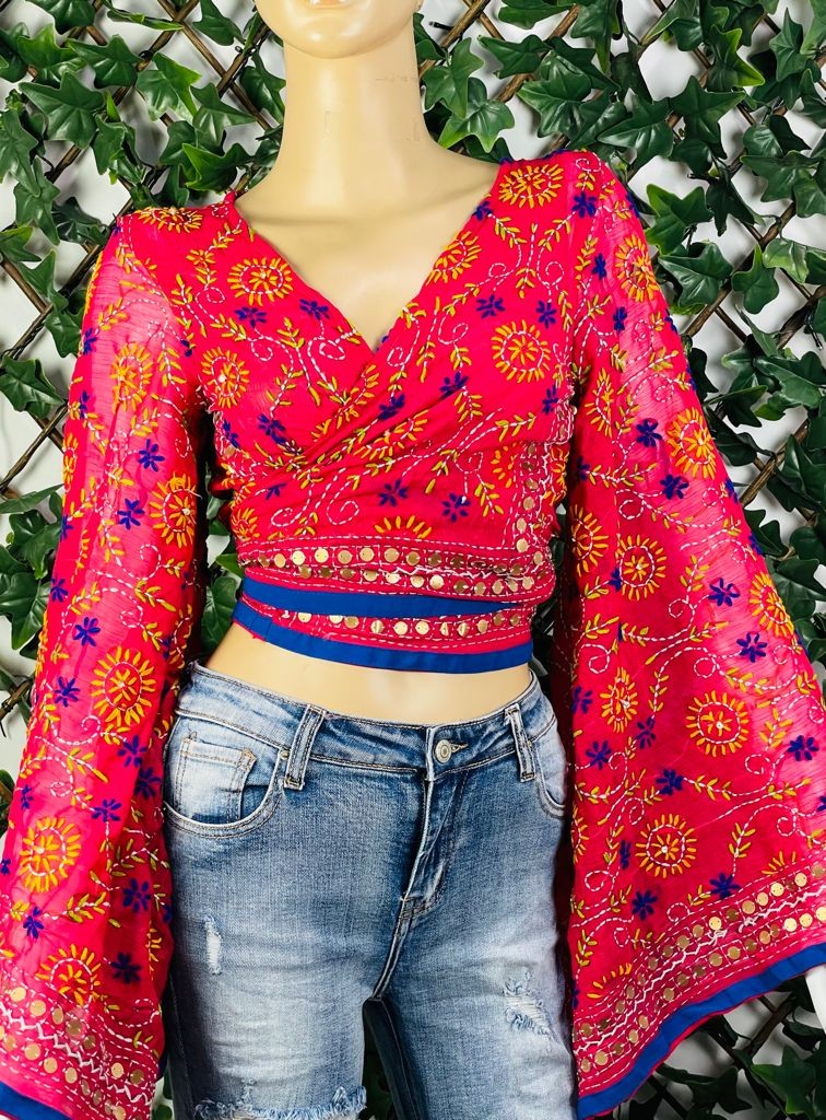 Top étnico con bordado a mano y mangas acampanadas, cada pieza es única en su diseño de bordado, por lo que no hay dos iguales.