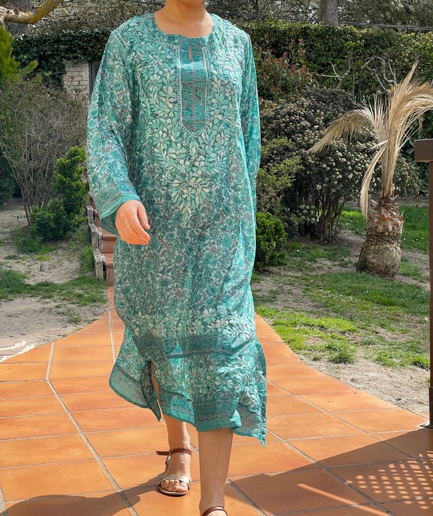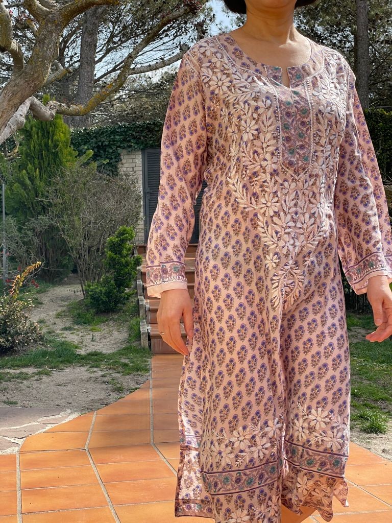 Túnica con exquisitos bordados hechos a mano, cada detalle cuidadosamente trabajado para crear una pieza única.
