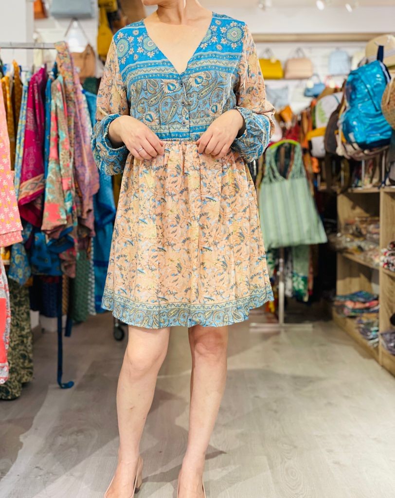 Vestido corto de estilo bohemio con influencias indias, cada uno es único y diferente al resto.