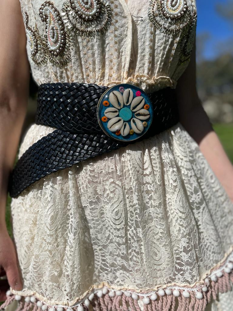 Cinturón de piel artesanal con diseño de concha, disponible en color marrón. ¡Hazte con el tuyo en el siguiente enlace: CGCINTU90-SHELL!