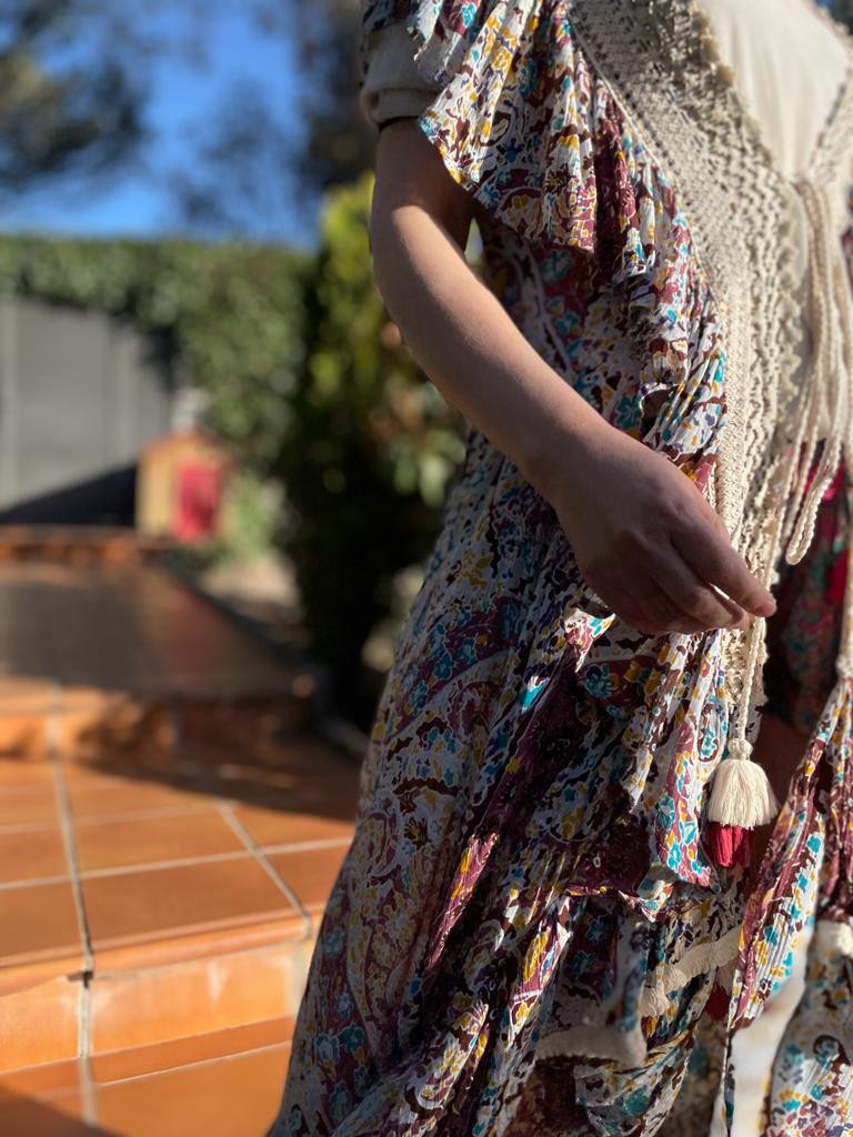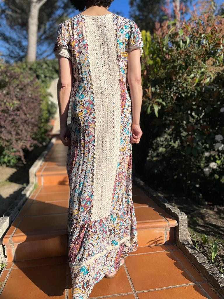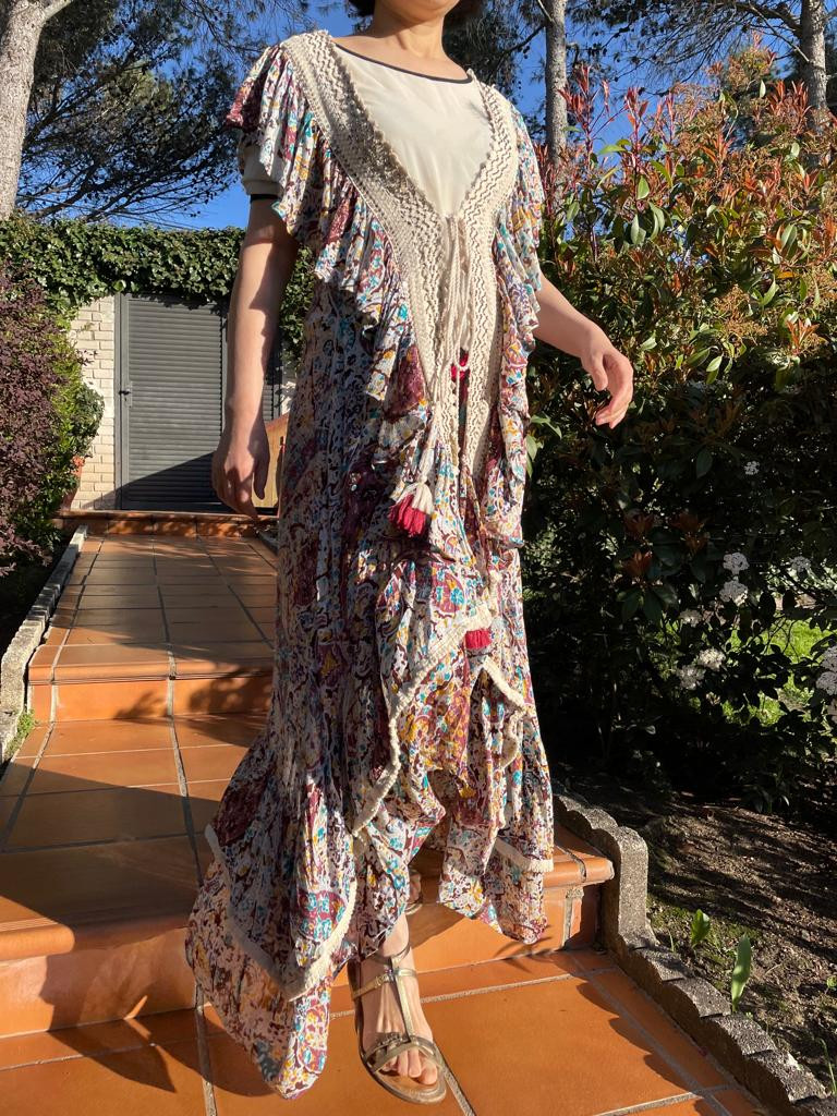 Vestido largo de verano con abertura frontal, perfecto para lucir en cualquier ocasión. Este vestido de talla única ha sido fabricado en India con los mejores materiales, garantizando calidad y comodidad.