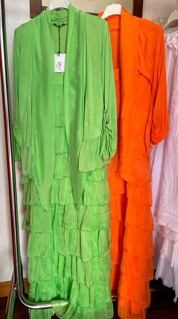 Hecho con una composición de Seda 30% y Viscosa 70%, este vestido es de alta calidad y durabilidad.